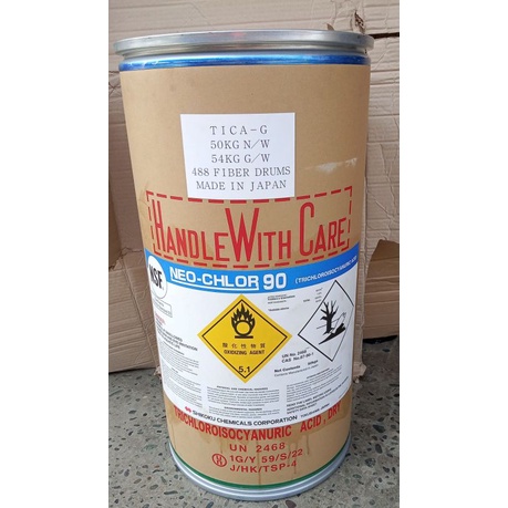 (ON HAND) NEO-CHLOR TCCA TICA 90 CHLORINE FOR SWIMMING POOL DISINFECTANT JAPAN PER DRUM 50 KG