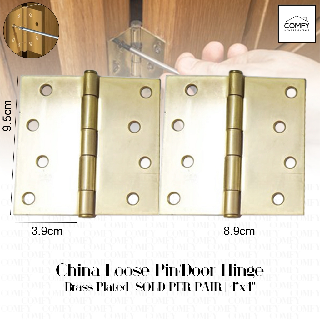 (ONE PAIR) China Brass Plated Loose Pin Door Hinge Hinges (3x3 / 3.5x3.5 / 4x4) Eudesigns BISAGRA