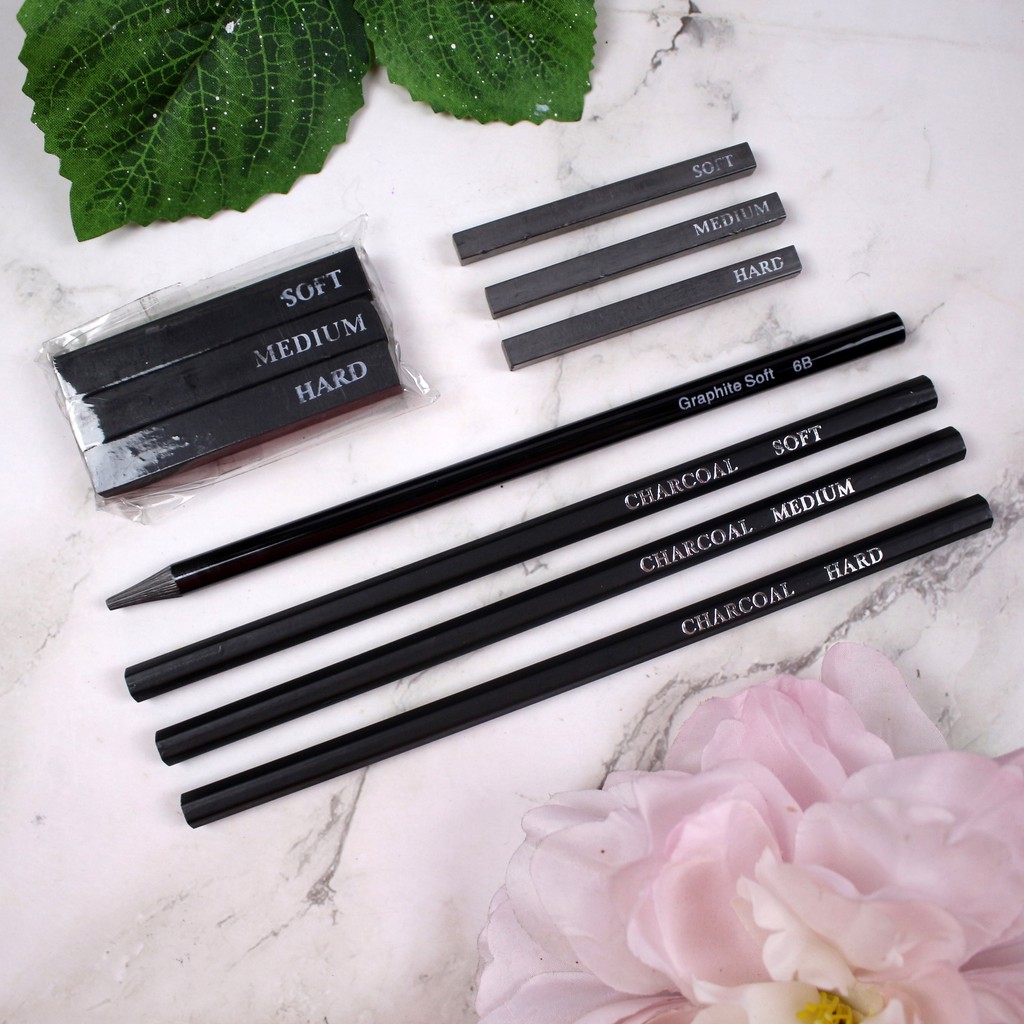 (ORIGINAL) Pencil & Charcoal Sketch Set with Sketch Pad for Drawing and Sketching