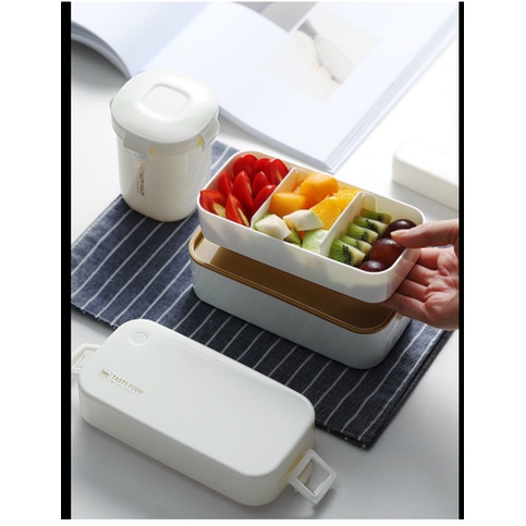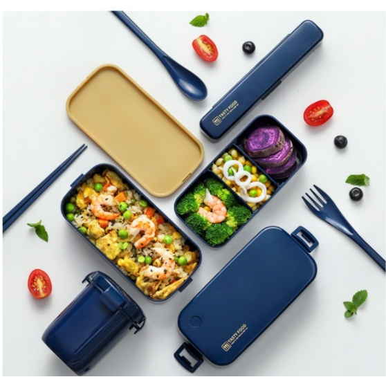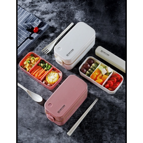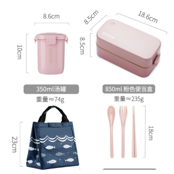 (Opening Promotion) Double-layer lunch box set with chopsticks spoon + lunch box bag + soup pot