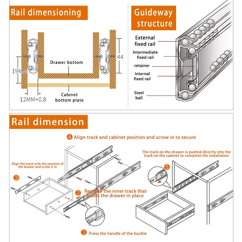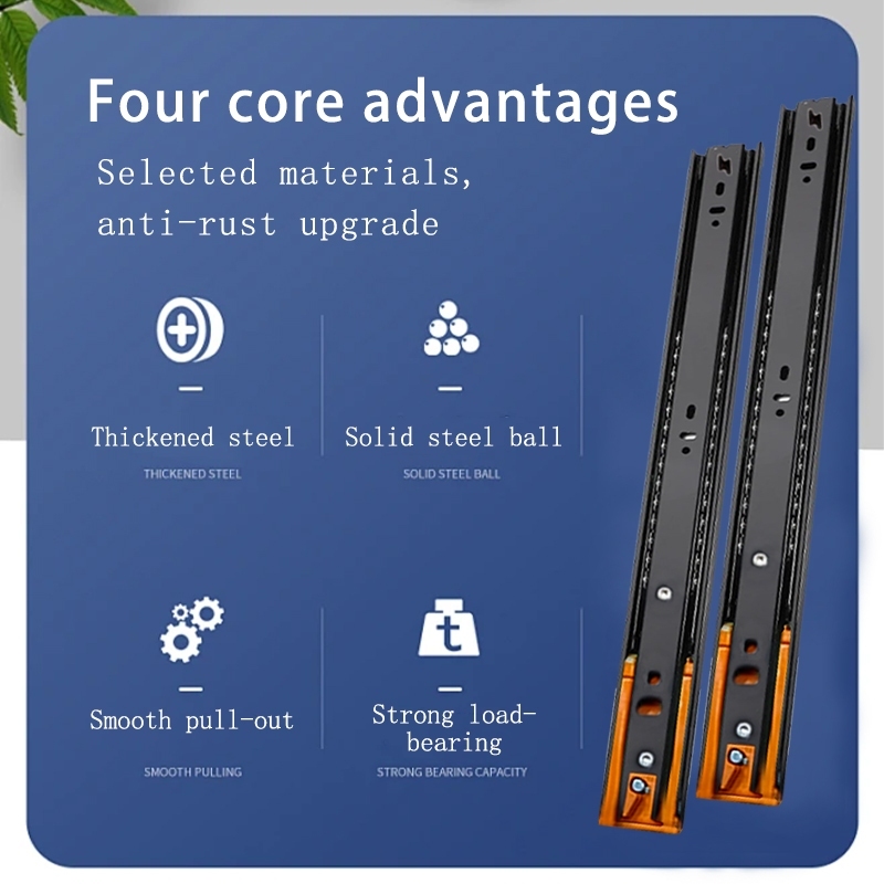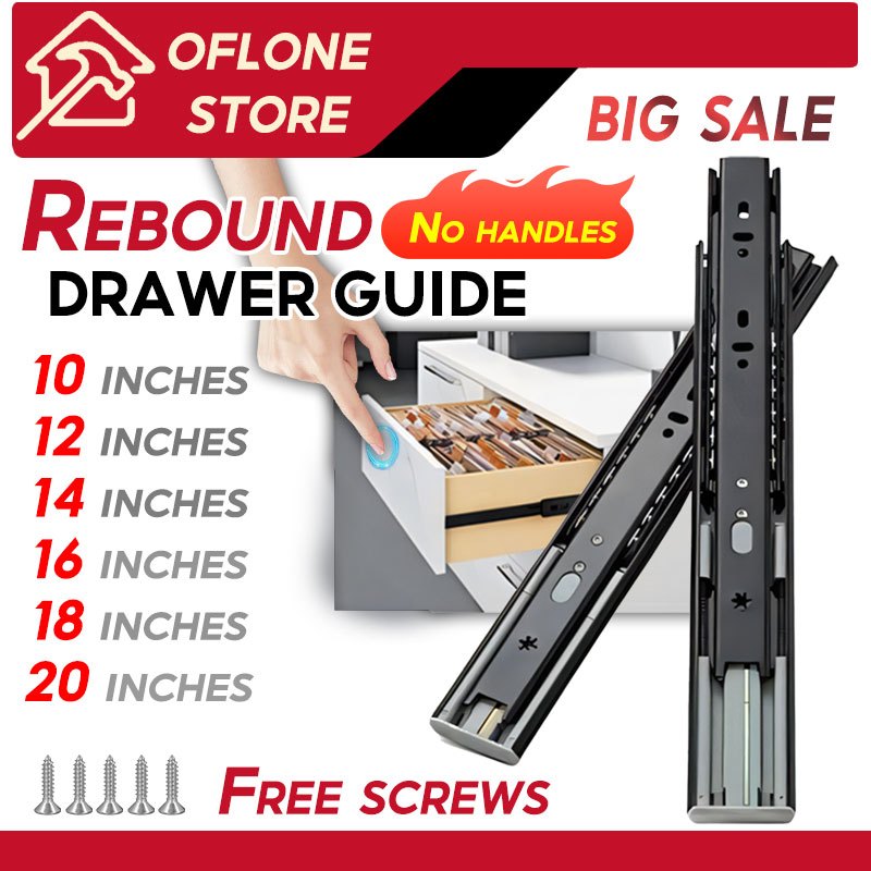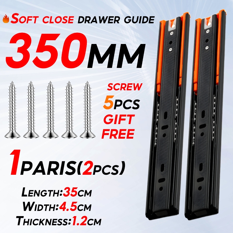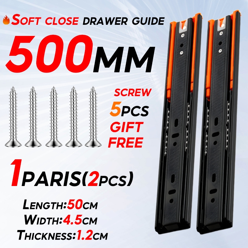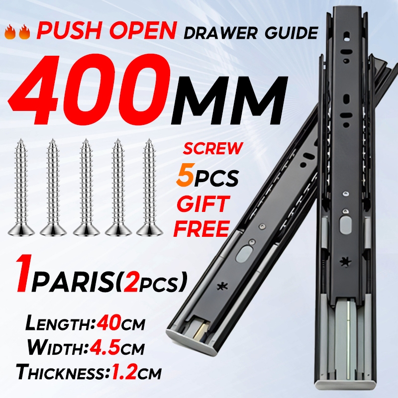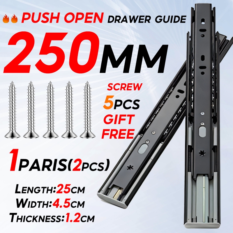 (PER PAIR) Hydraulic/PUSH OPEN Drawer Guide Full Extension Ball Bearing Heavy Duty