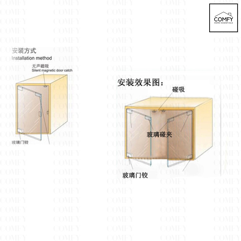 (PER SET) Magnetic Glass Hinges Single Push To Open Glass Cabinet Door Push Catches Magnet