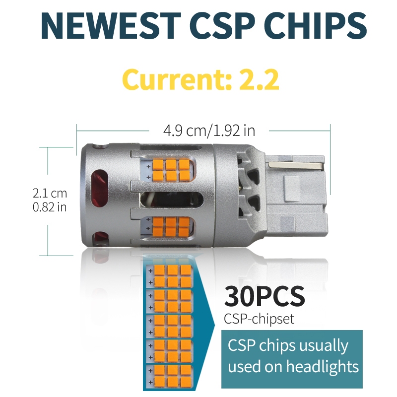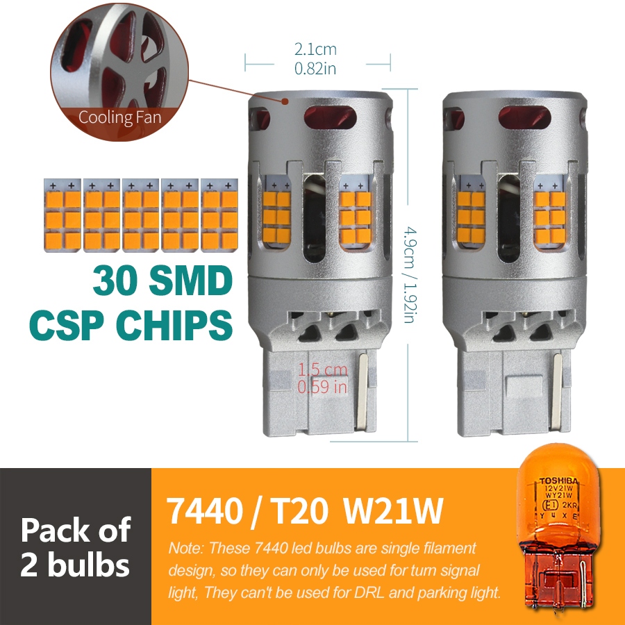 (Pack for 2) Canbus Error Free LED Turn Signal Light Lamp CSP Chips No Hyper Flash T20 7440 W21W LED Blinker Bulb 12V (Amber/Yellow)