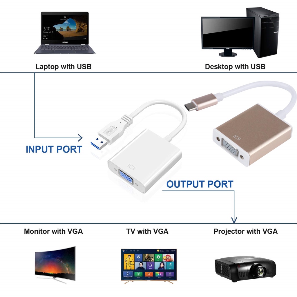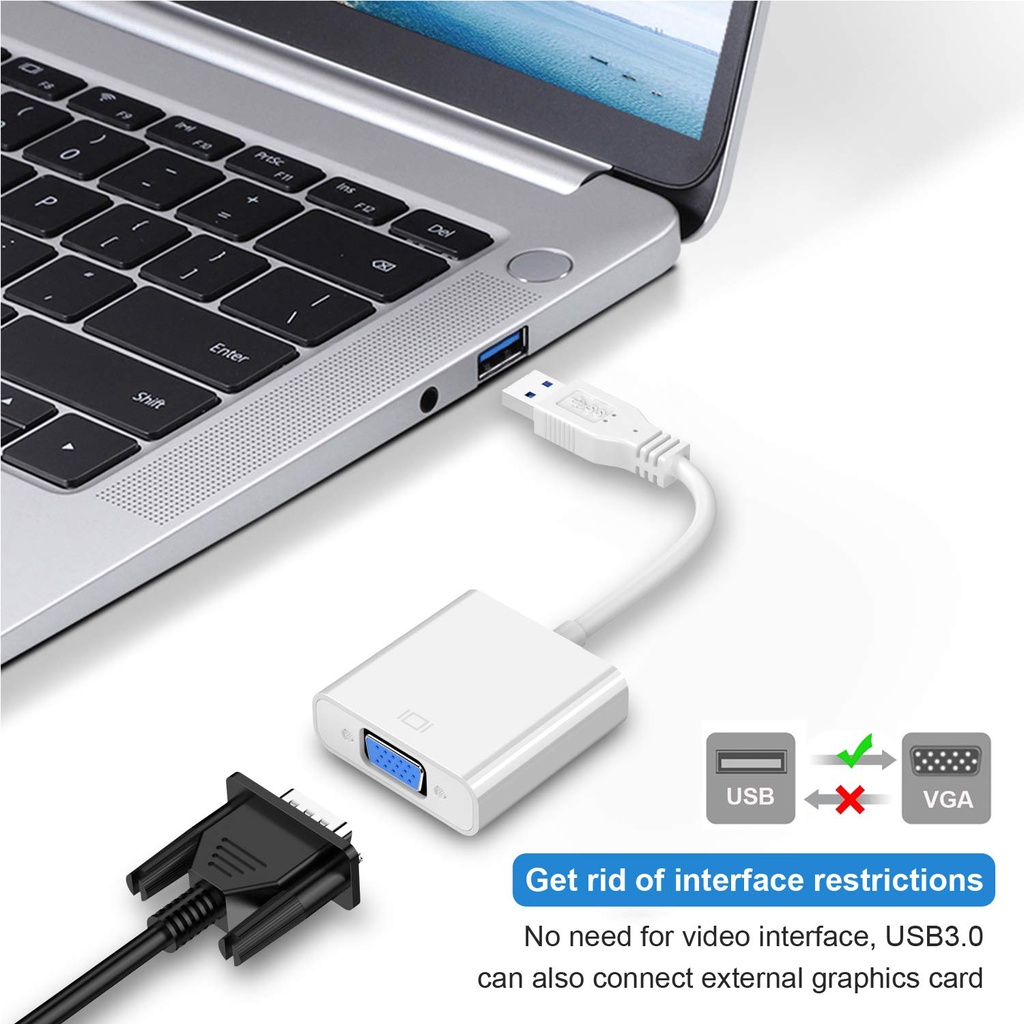 (Plug and Play) USB 3.0 to VGA Video Adaptor Cable Connector For Pc Laptop Monitor Projector