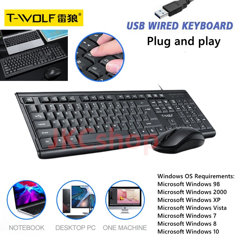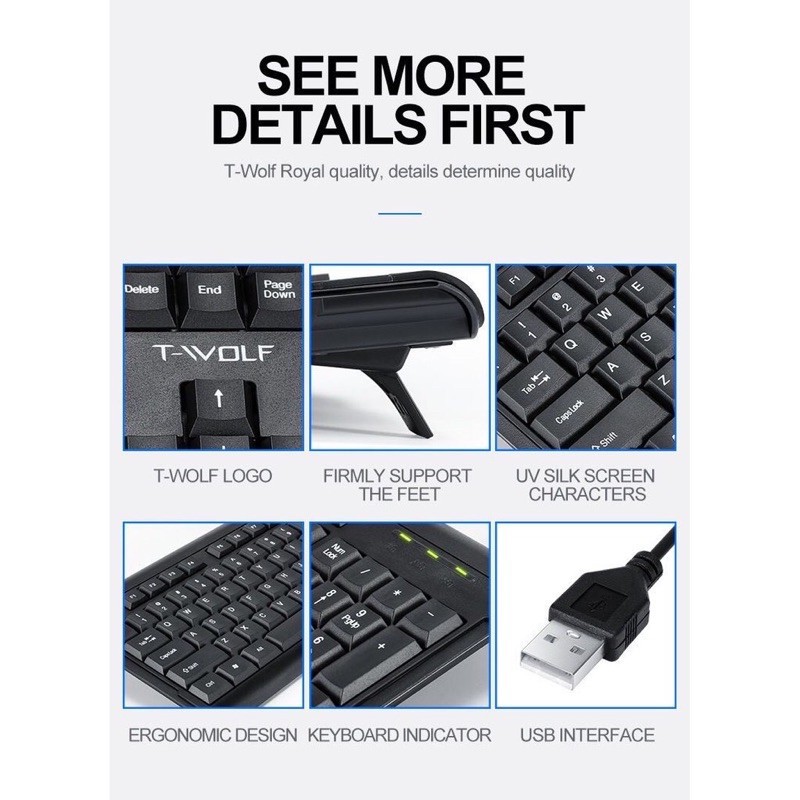 (Plug and play) T-WOLF TF500 Universal USB Wired Keyboard And Mouse Set For Office / Gaming