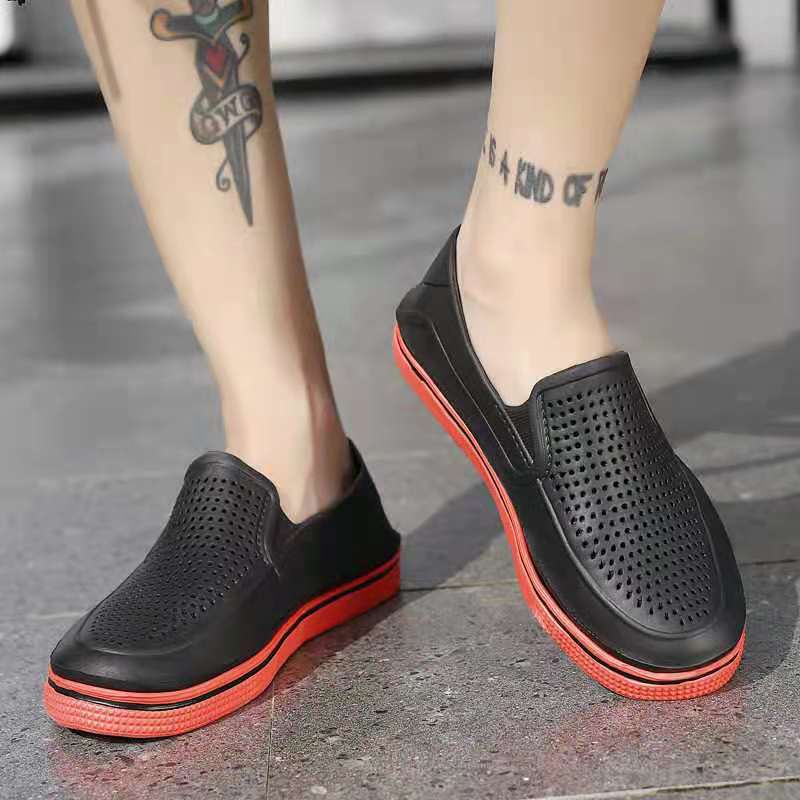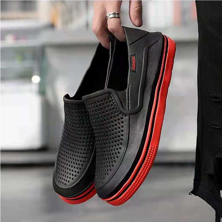(Ready Stocks)New arrival fashion rubber black shoes casual leather shoes for men (Rubber-weighty)
