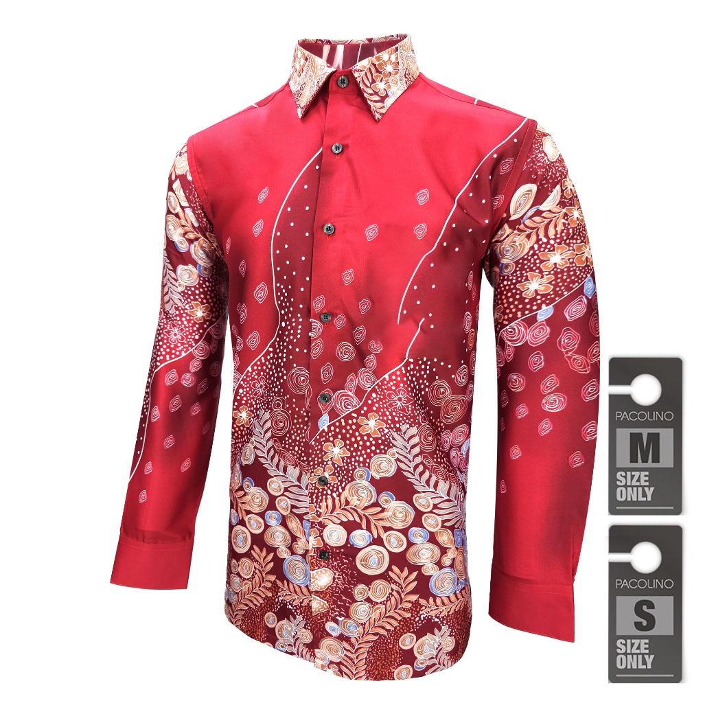 (Regular) Red Color Malaysia Men Batik Long Sleeve Kemeja Batik Lelaki Lengan Panjang FF9676