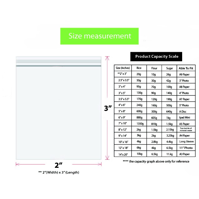 (SMALL SIZE) [2x3", 2.5x3.5", 3x4", 3x5", 4x6"] PE Plastic Zipper Zip Bag Ziplock Bag 100pcs/pkt
