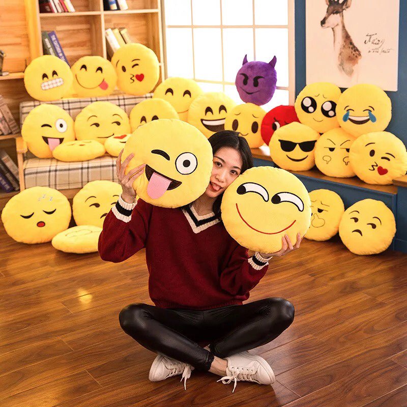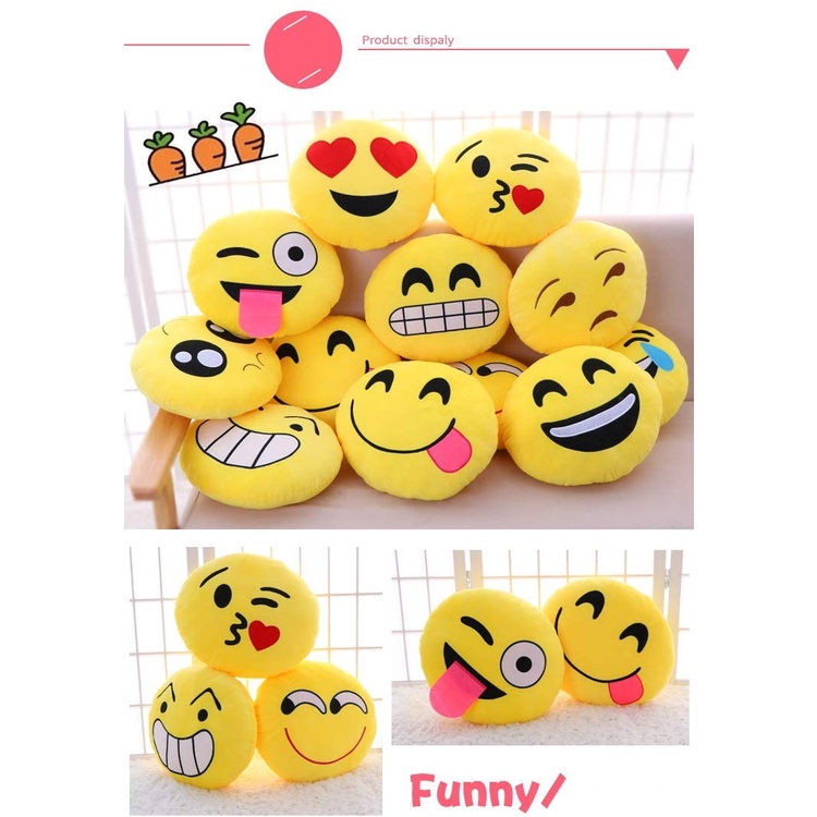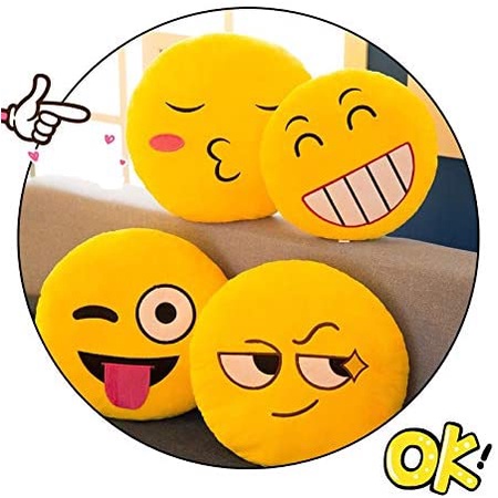(Small) New Yellow Round Emoticon Pillow, Emoji Pillow Random Design Soft Microfiber