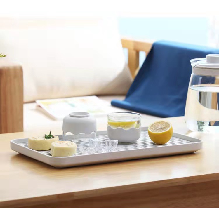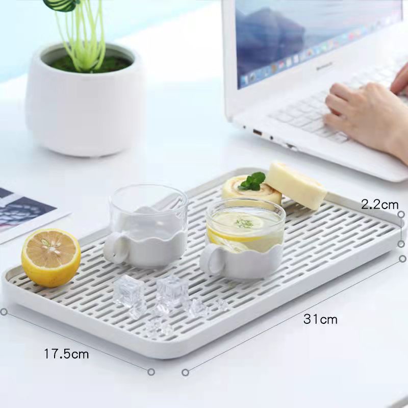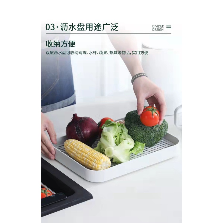 (Spot goods)Drain Tray Double Layer Tray Rectangular Tea/Fruit Tray Creative Drain Basket Tray Livin