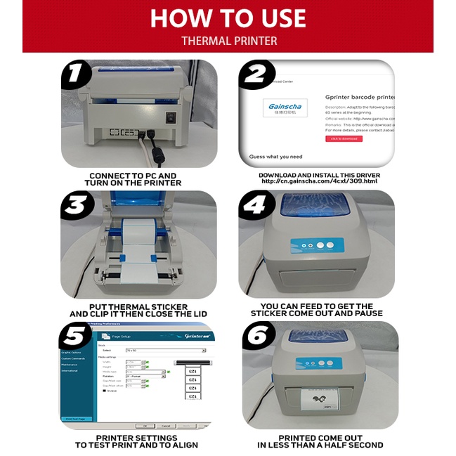 (USB + Bluetooth Ready) Gprinter Thermal Barcode Printer GP-1424D Waybill Printer Only