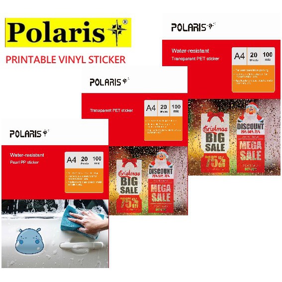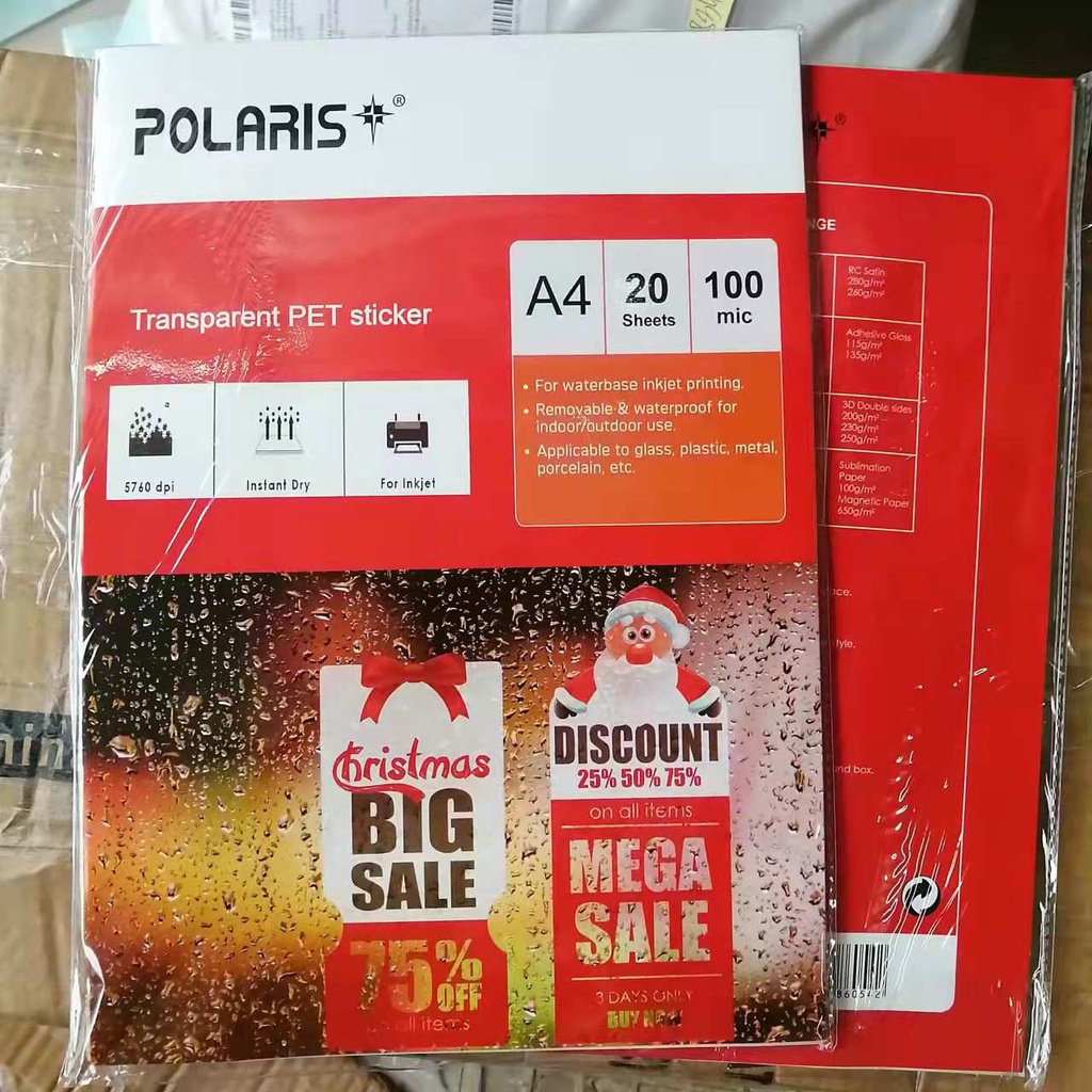 (WATERPROOF)POLARIS PP Pearl, PET Aluminum and Transparent PET Sticker 20sheets INKJET PRINT