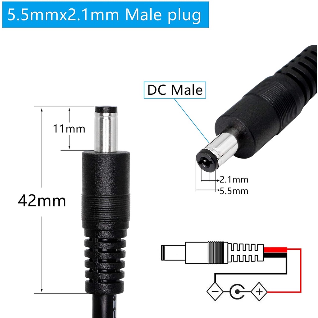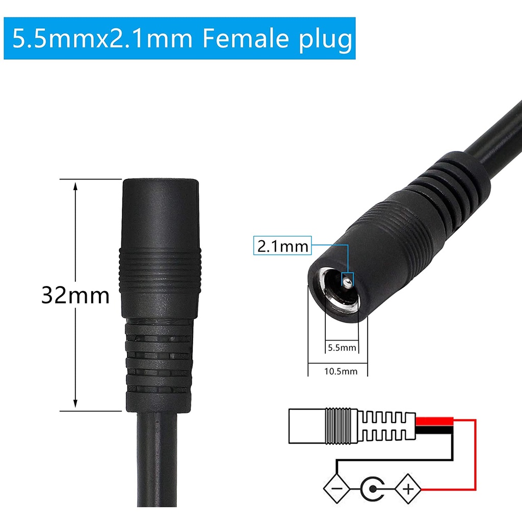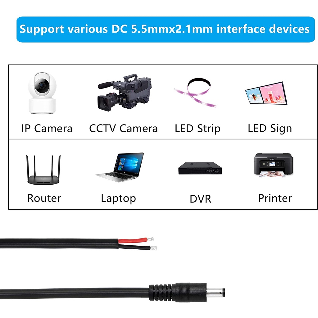 (White Color) DC Power Pigtail Cable 5.5x2.1mm Jack Plug Male Female 5V 12V Copper Wire Connector For LED Strip Light Solar Panel Battery