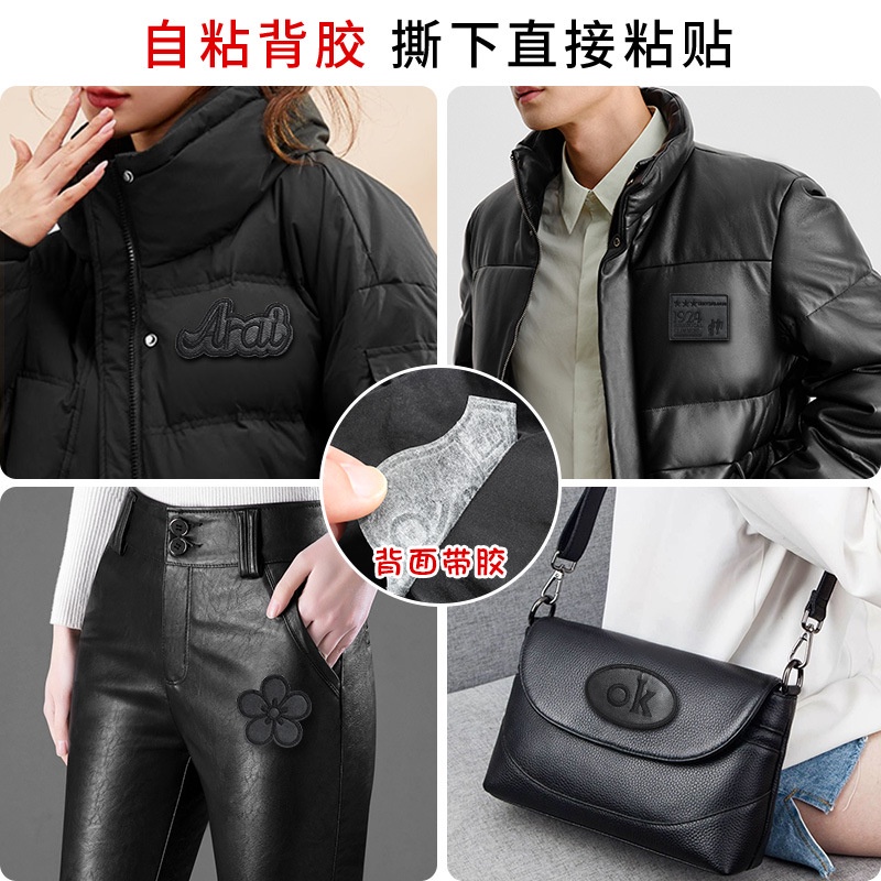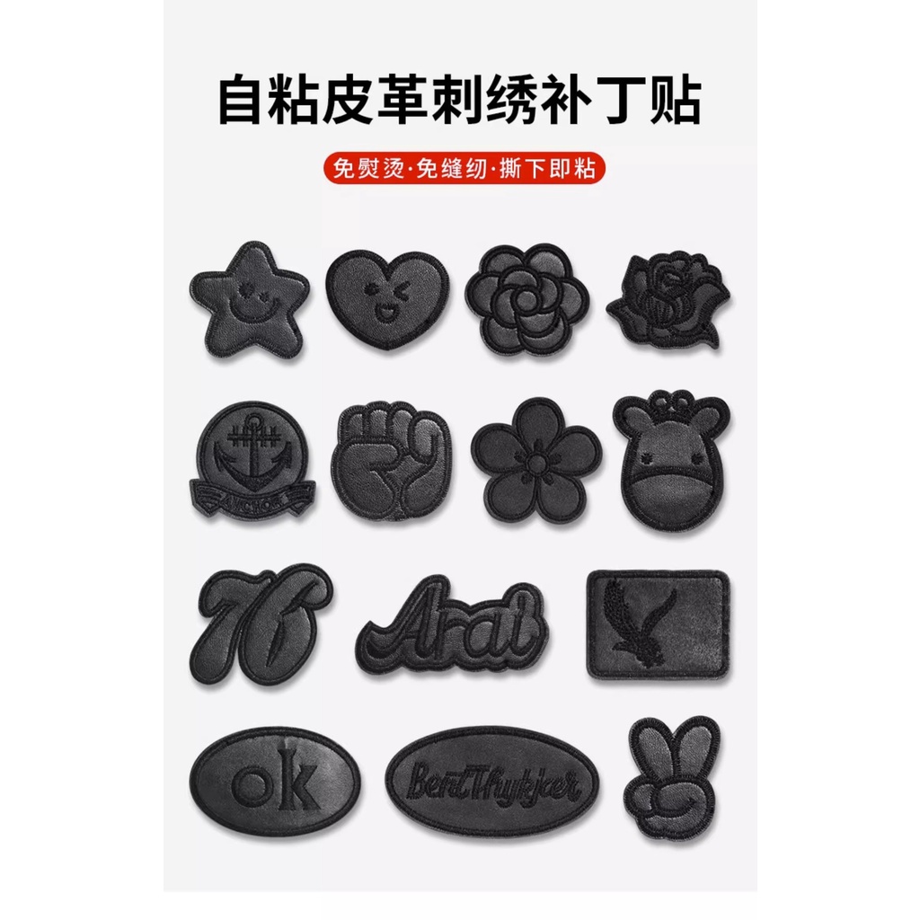 (buy 2 get free 1)Diy Clothing Black Patch Sticker Self-Adhesive Seam-Free Down Jacket Cloth Sticker Leather Jacket High-End Repair Clothes Bag Hole Decoration Pattern Cloth Sticker