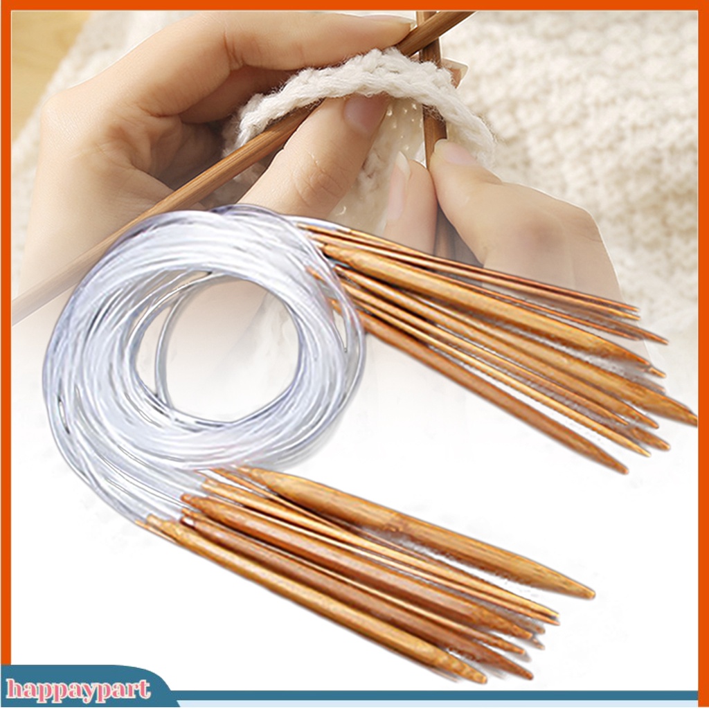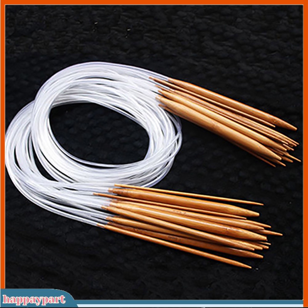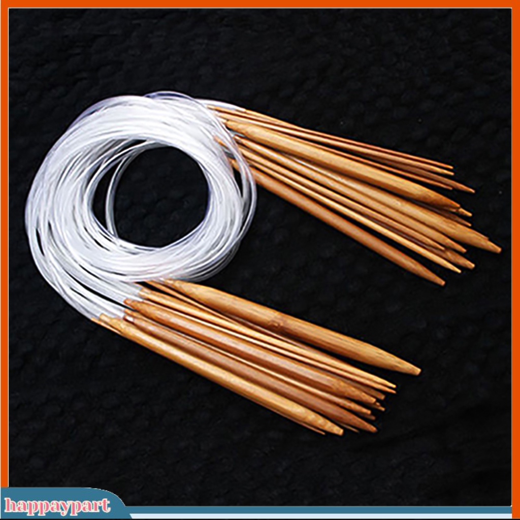 (happaypart) 18Sizes 40/60/80/100/120cm Tube Circular Carbonized Bamboo Knitting Needle Set