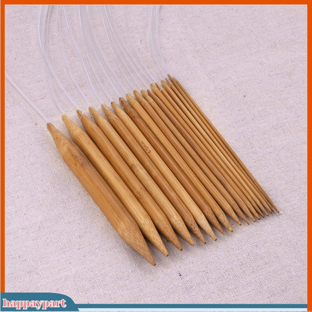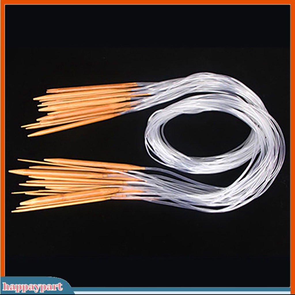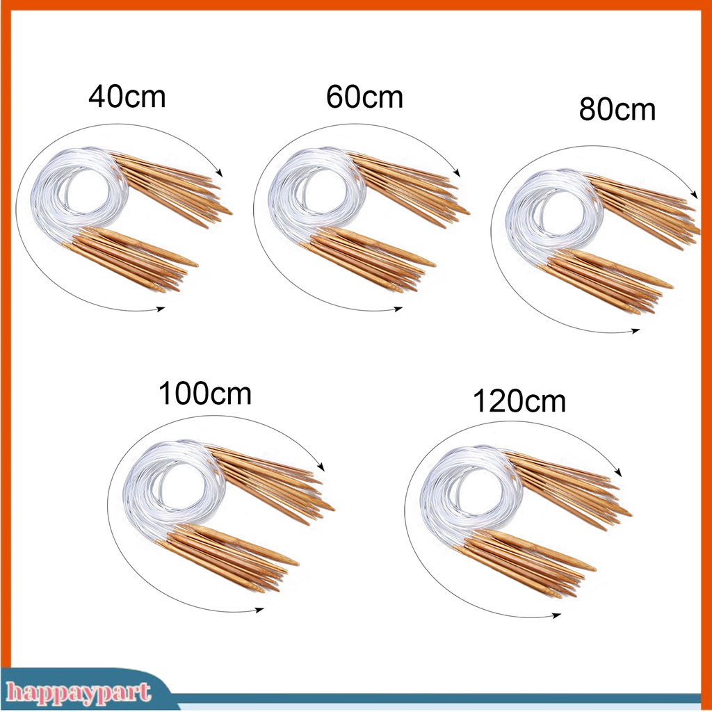 (happaypart) 18Sizes 40/60/80/100/120cm Tube Circular Carbonized Bamboo Knitting Needle Set