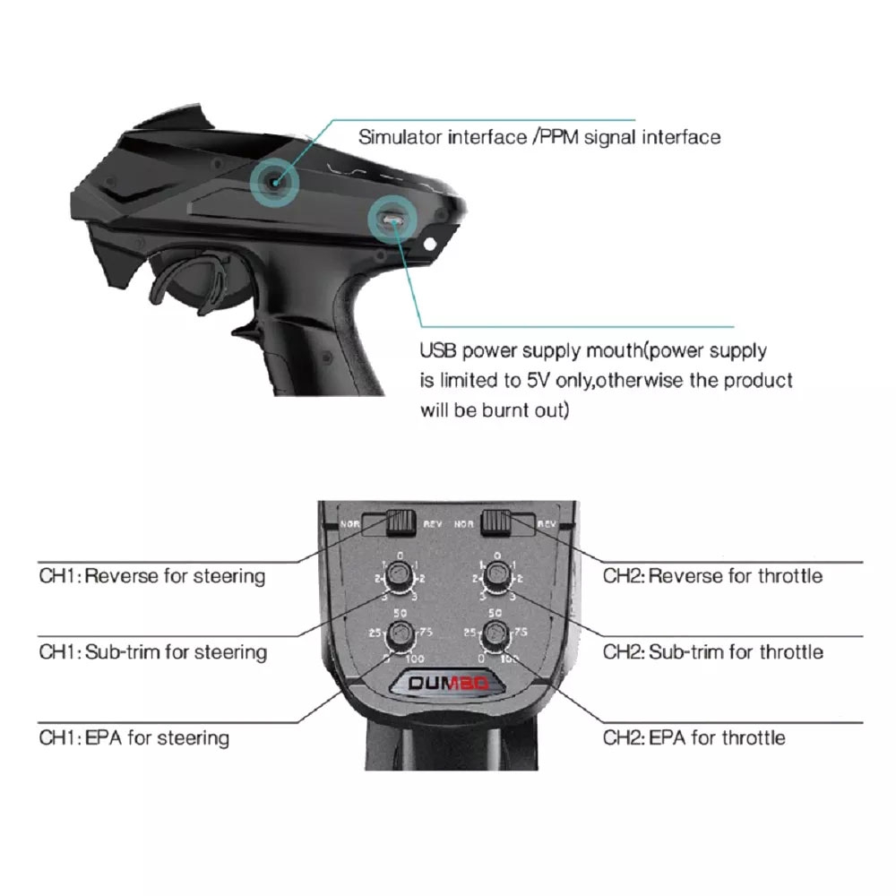* DUMBORC X4 X6 4CH 6CH 2.4G RC Radio Transmitter Remote with X6F/X6FG Gyro Receiver for RC Car *