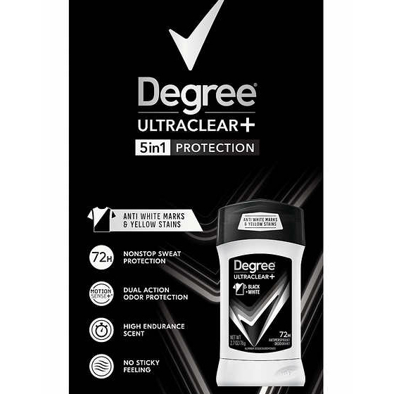 *72-Hour NEW Degree Men Ultra Clear Black + White Solid Antiperspirant Deodorant, Dye Free