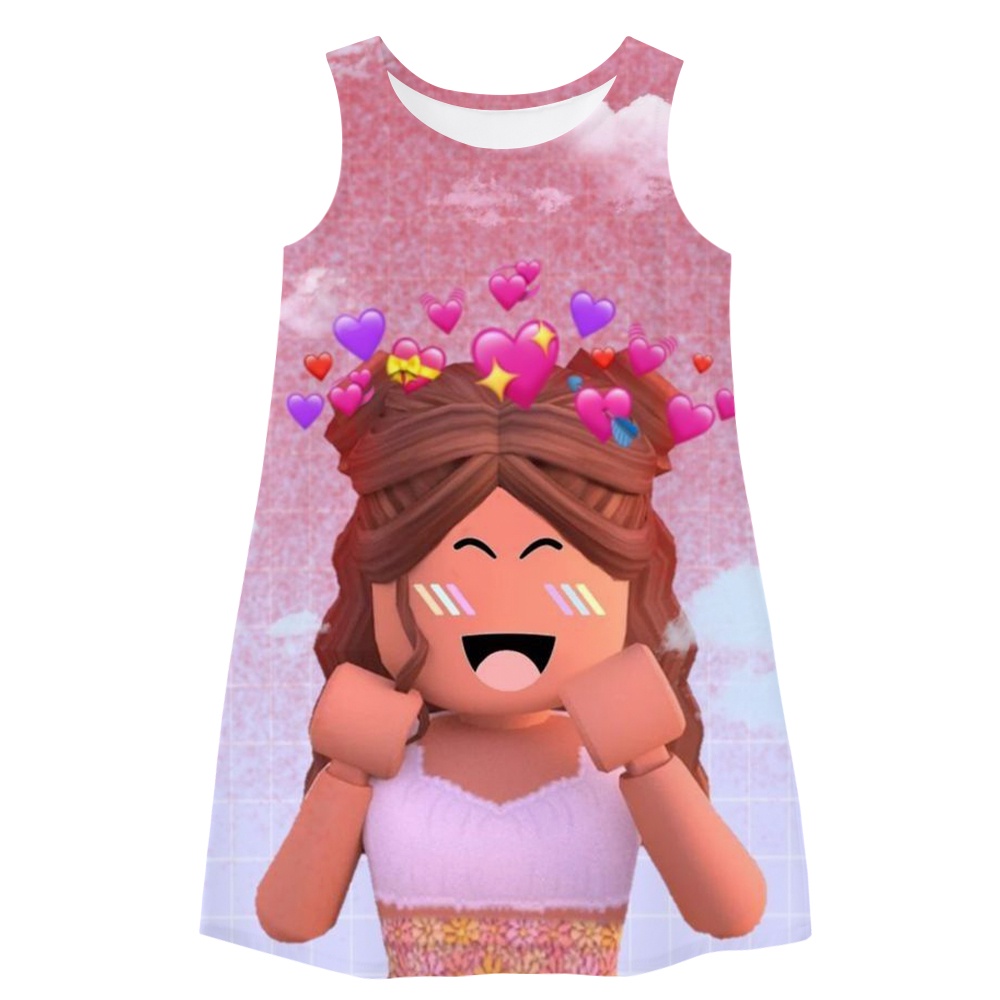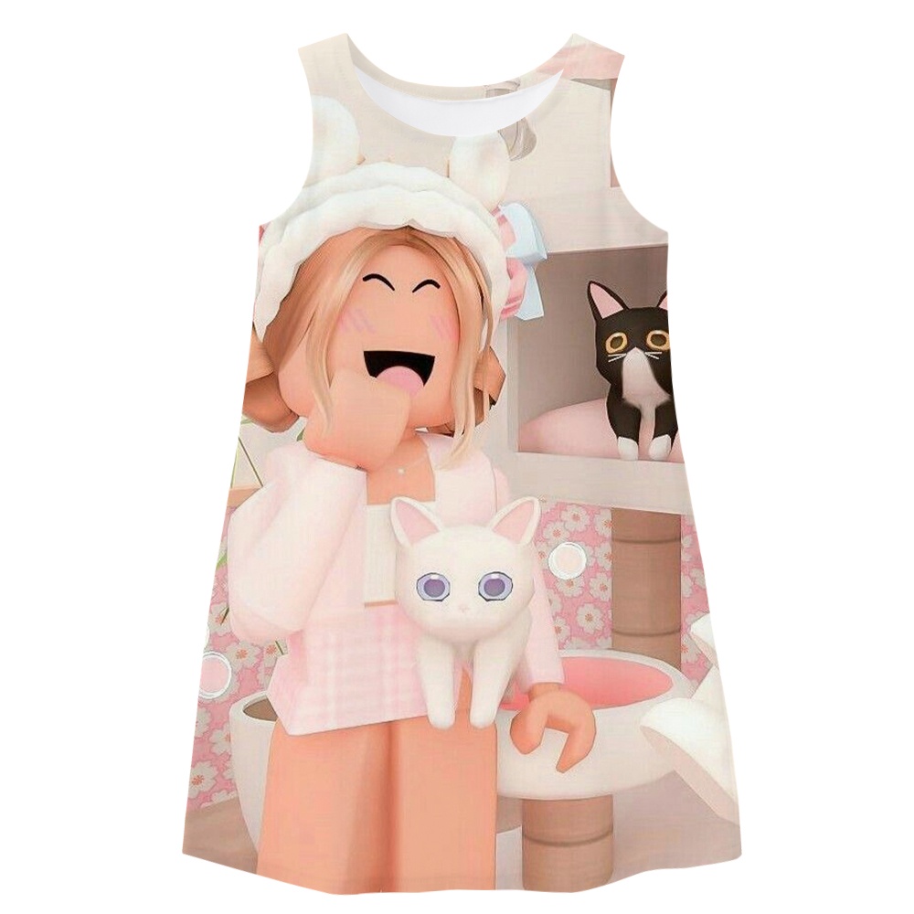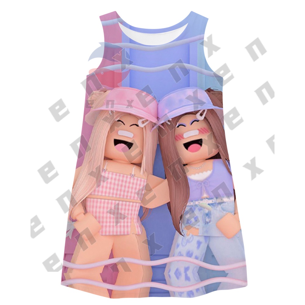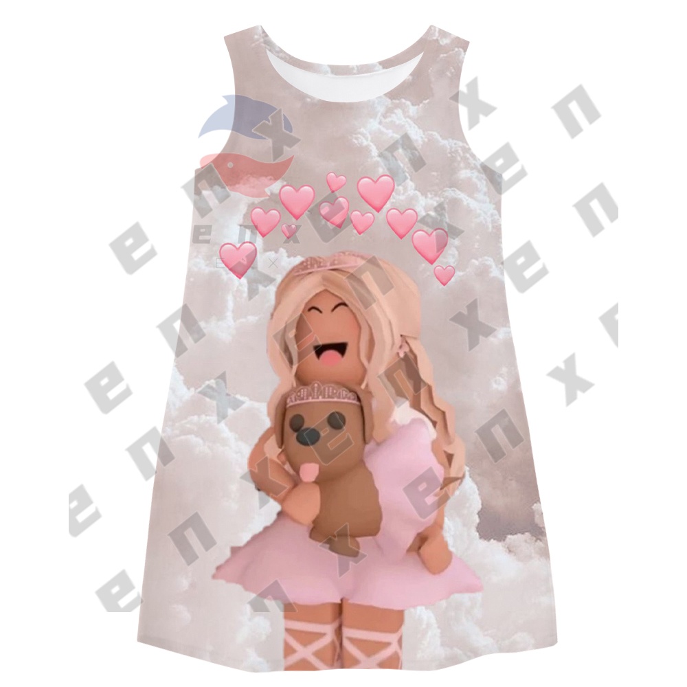 *ENX* Girls Dresses 3-14 Years Old ROBLOX T-Shirts Cute Girls Dresses Kids Dress Fashion Long Dress