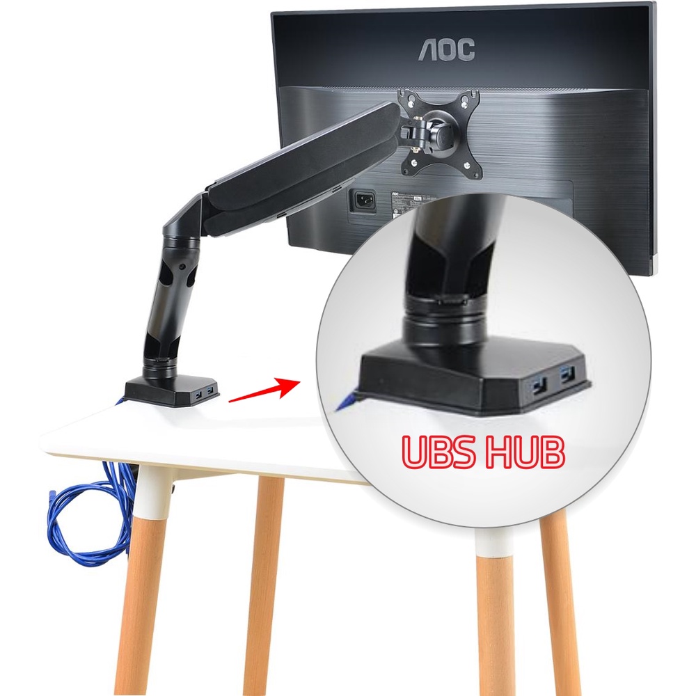 *New* Gas Spring Monitor Desk Mount Stand w/ USB3.0 port Full Motion Swivel Arm Bracket for Computer