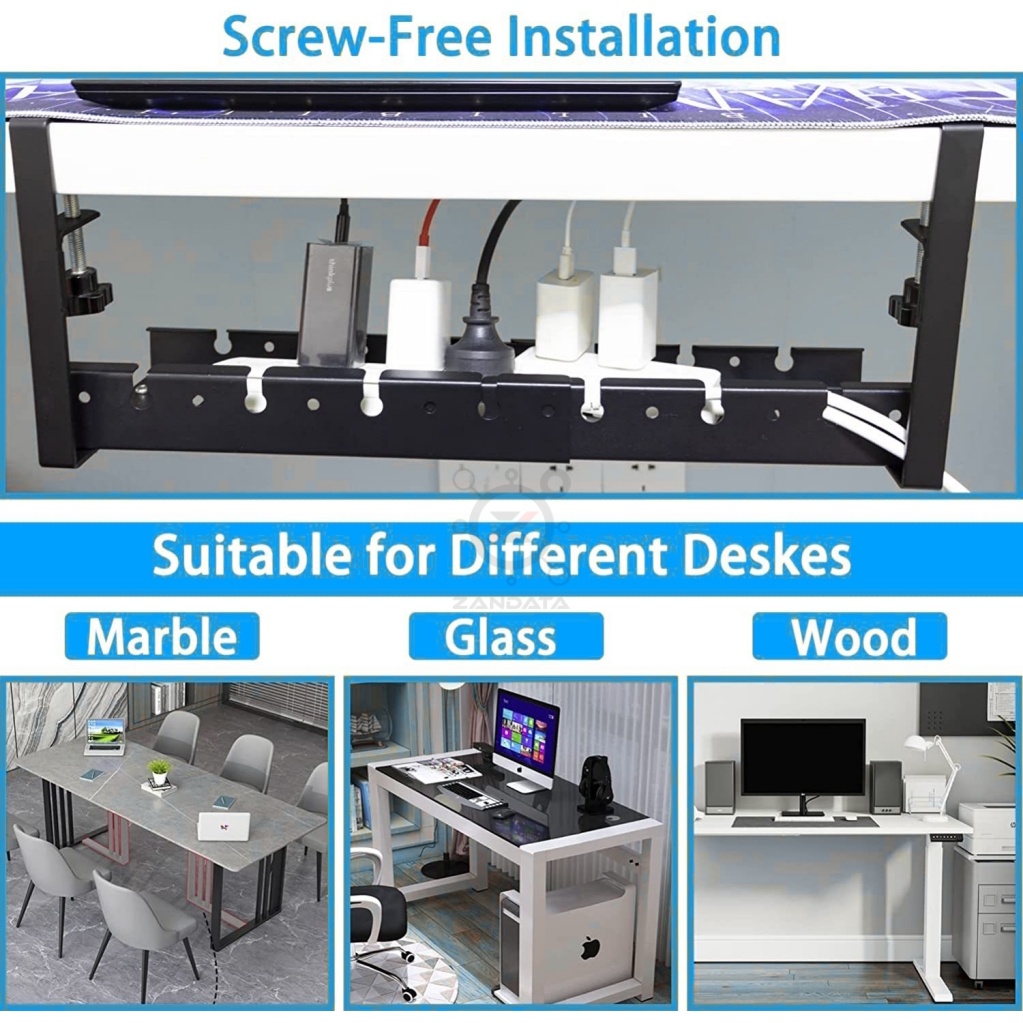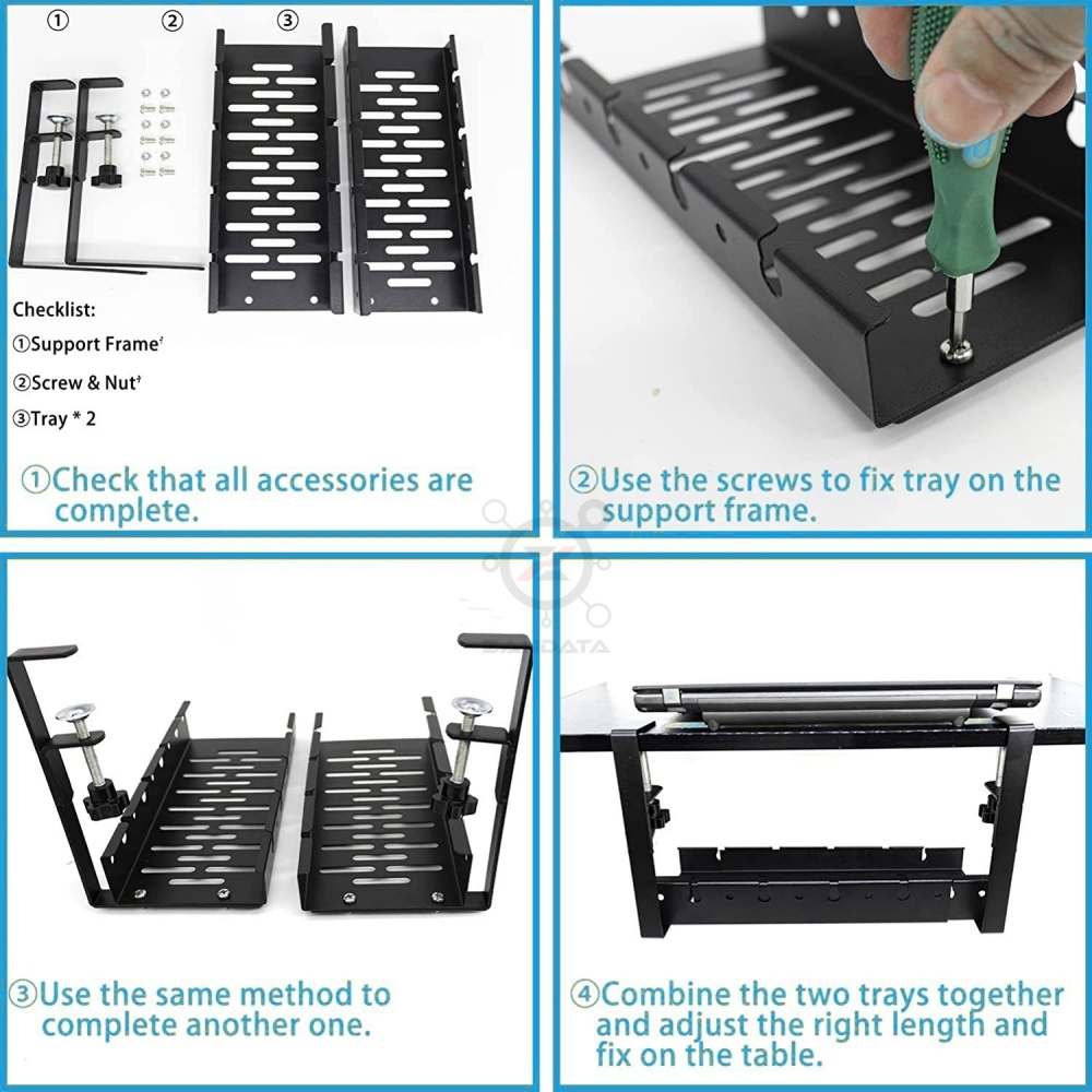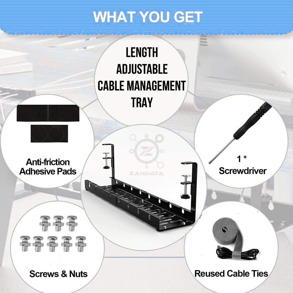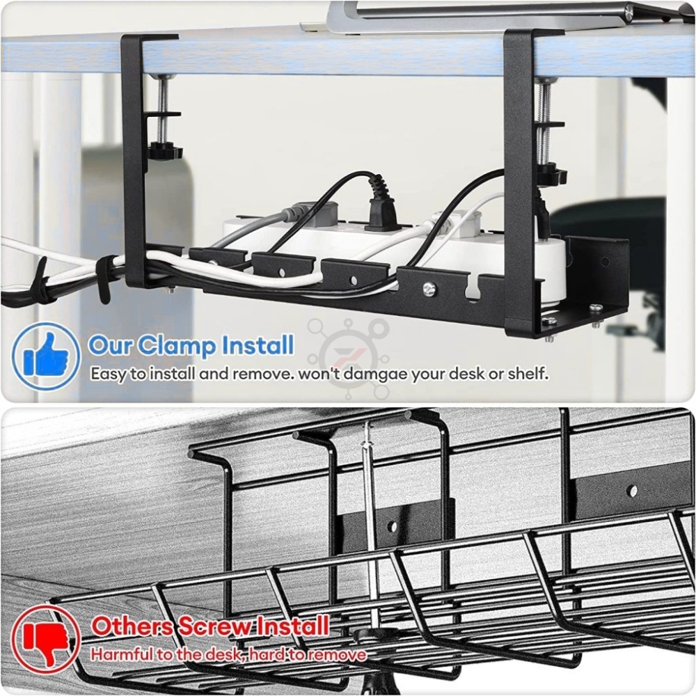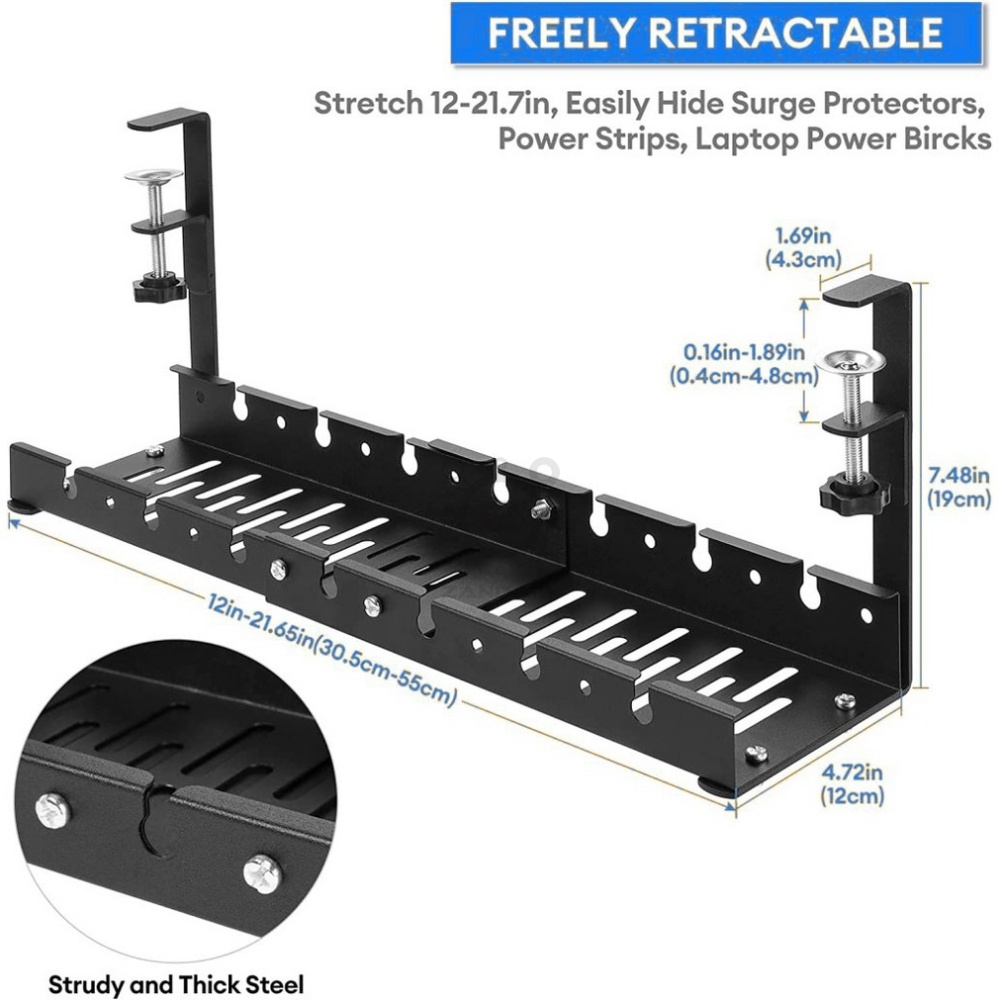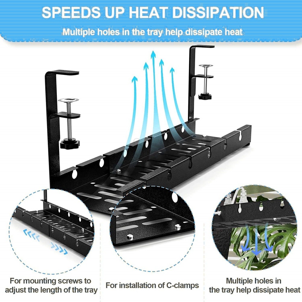 *New* No Drilling Under Desk Adjustable Length Cable Management Tray Wire Management Set Standing De