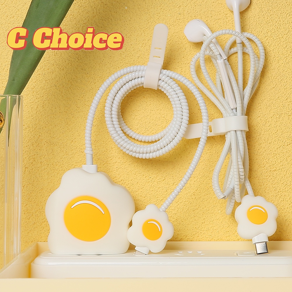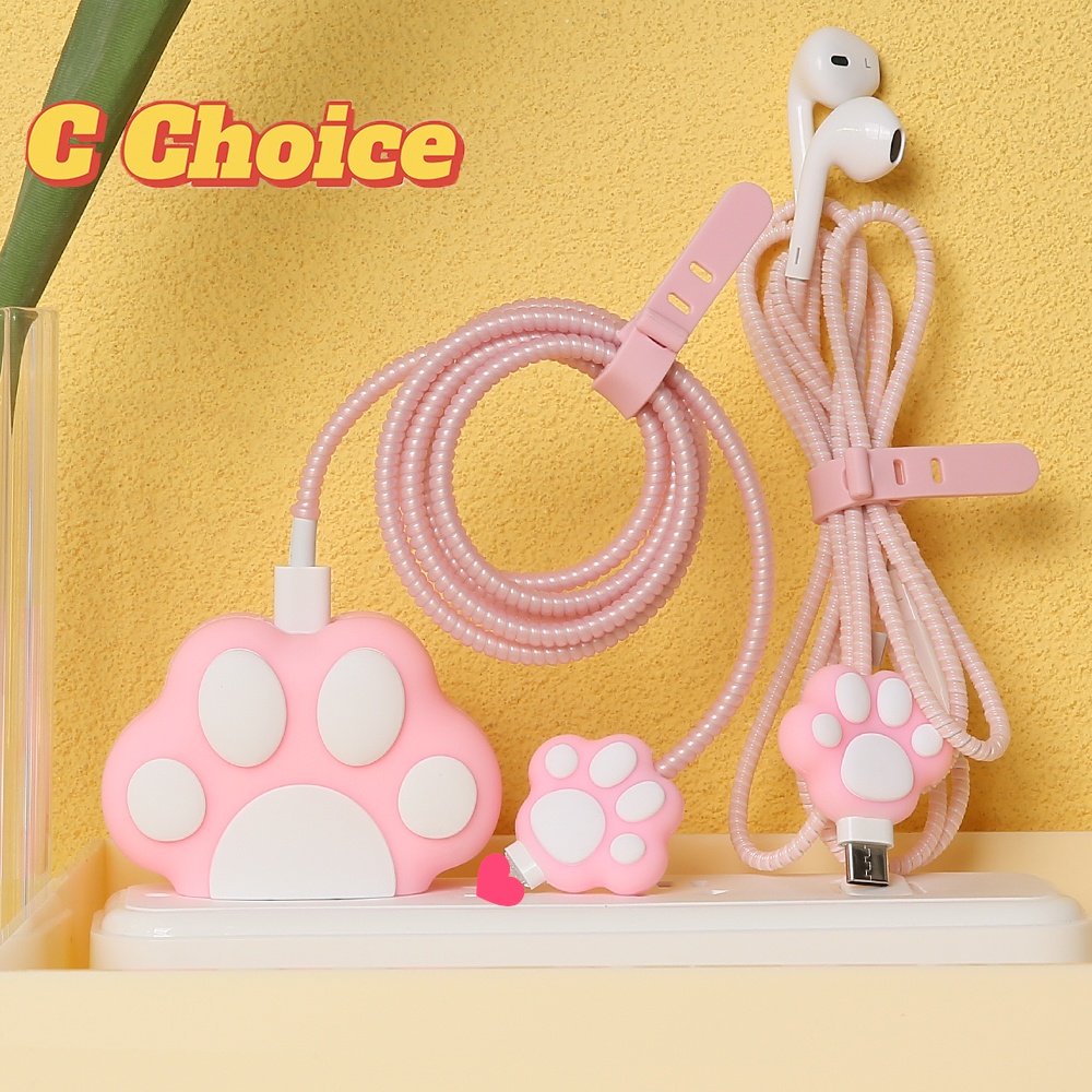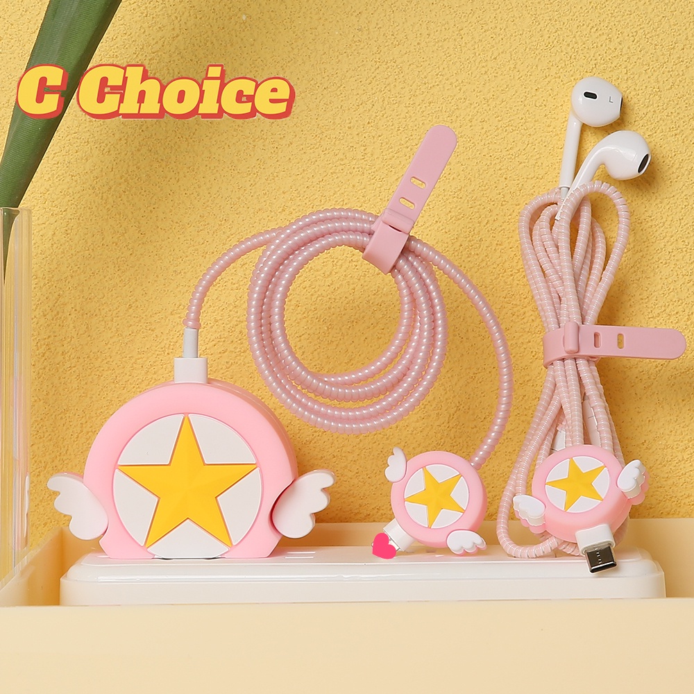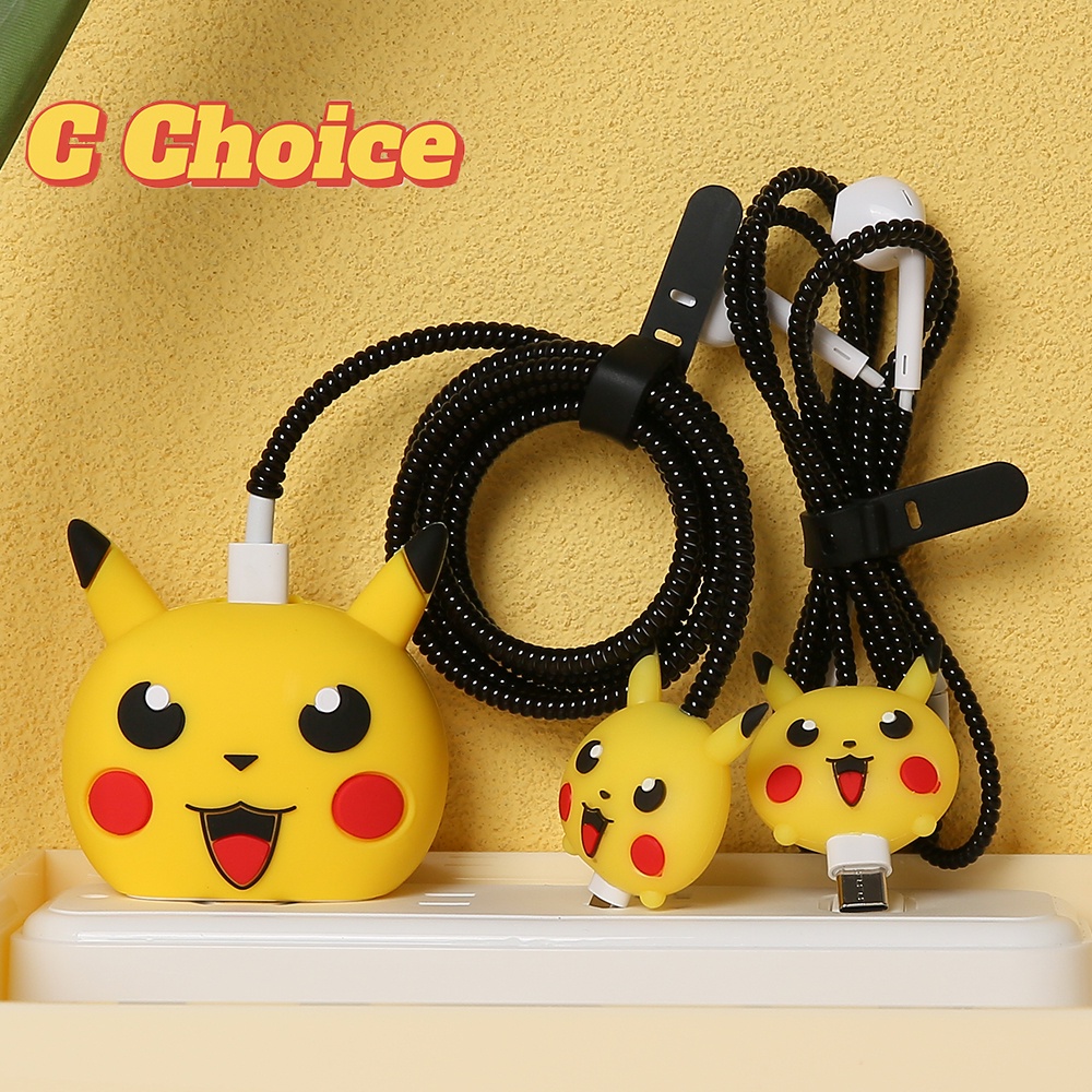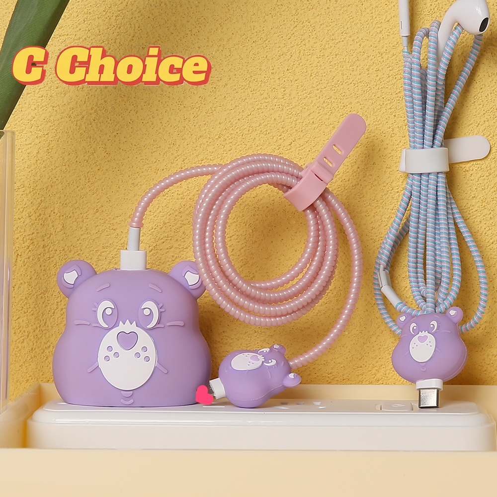 *Ready Stock*7in1 Cartoon Charger Protector for iPhone cable protector Spiral Earphone Cord Protector Charging Silicone charger case cover compatible for iPhone 18w 20w 14 pro max