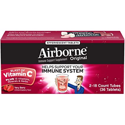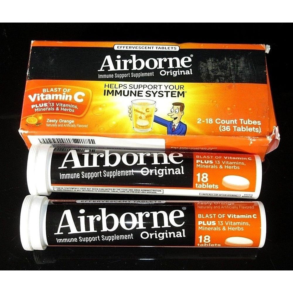 US Airborne Immune Support, 36 Effervescent Tablets | Airborne Zesty Orange l Airborne Very berry