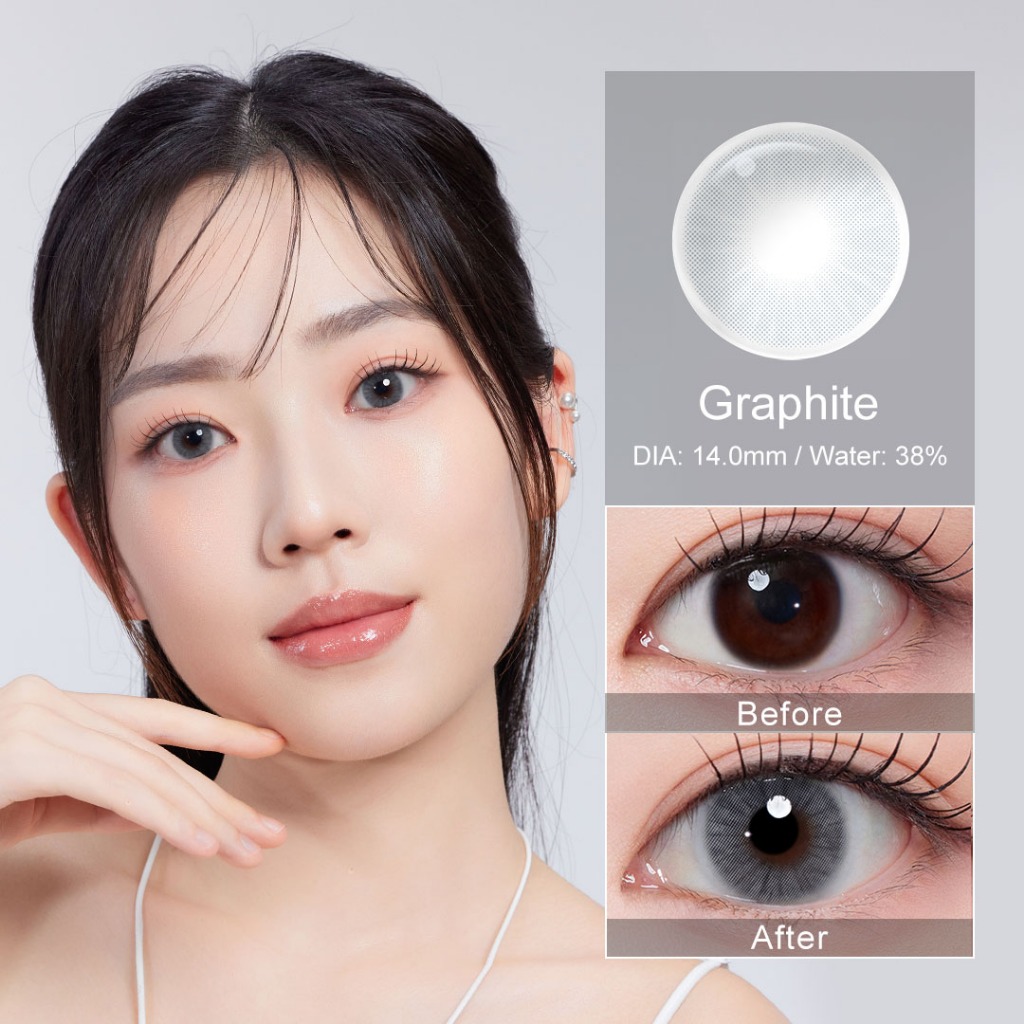 [ 0.00~-6.00] Magister contact lens with grade 14mm Queen Ochre Icy Gray Graphite 6month free case