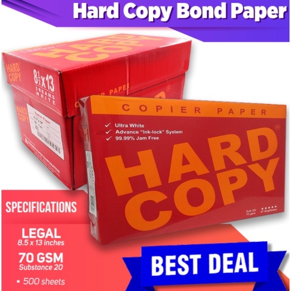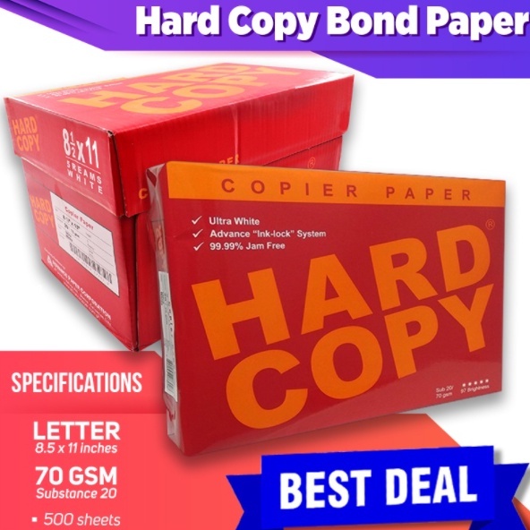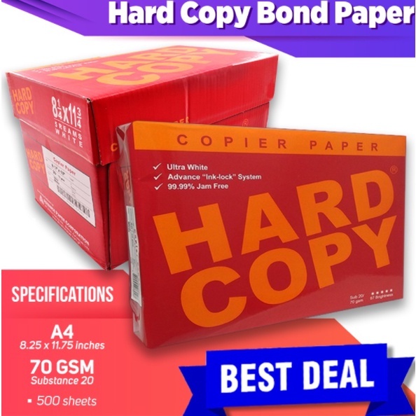 [1 BOX] HARD COPY 70 GSM Bond Paper Short | A4 | Long Size Ultra White (5 Reams/Box) School | XPD