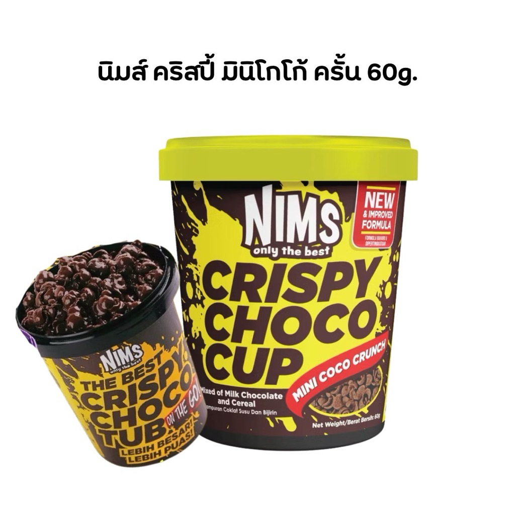 [1 Jar] Nims crispy choco tube Chocolate Coated Snacks Cocoa Crunch 60 G.