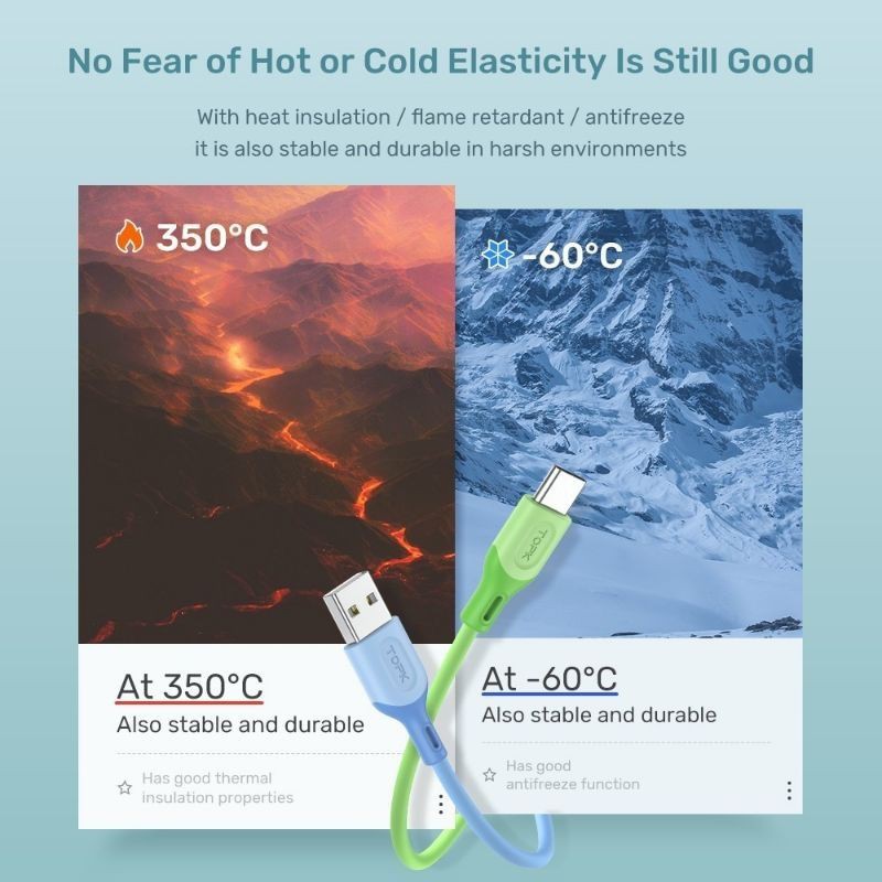 [1 Meter] Topk Liquid Silicone Charger and Data Cable - Type C / Micro USB