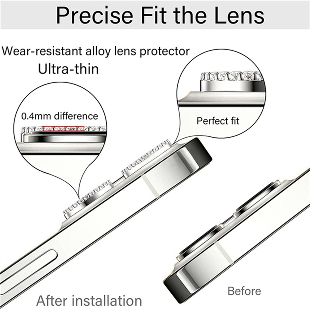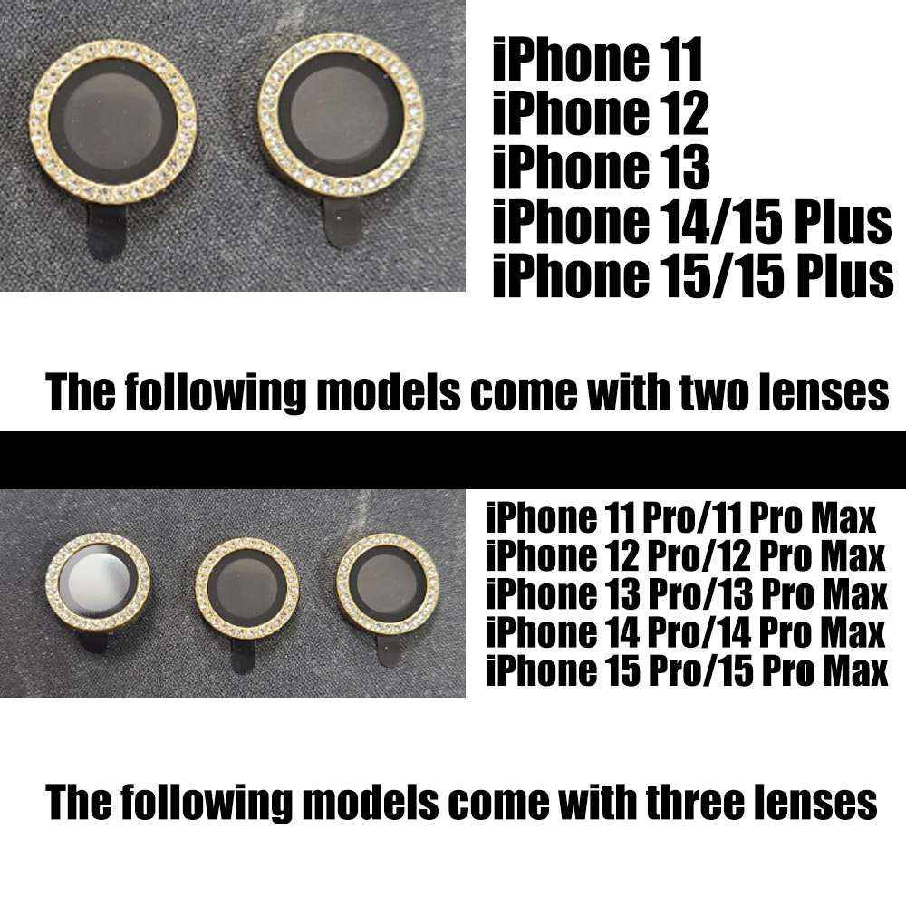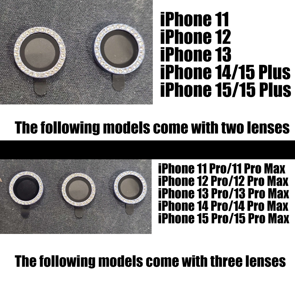 [1 Set] For iPhone 11 12 13 14 15 Plus Pro Max Bling Rhinestone Camera Lens Protector, Protection Camera Cover Tempered Glass Screen Protector Diamond Metal Individual Ring