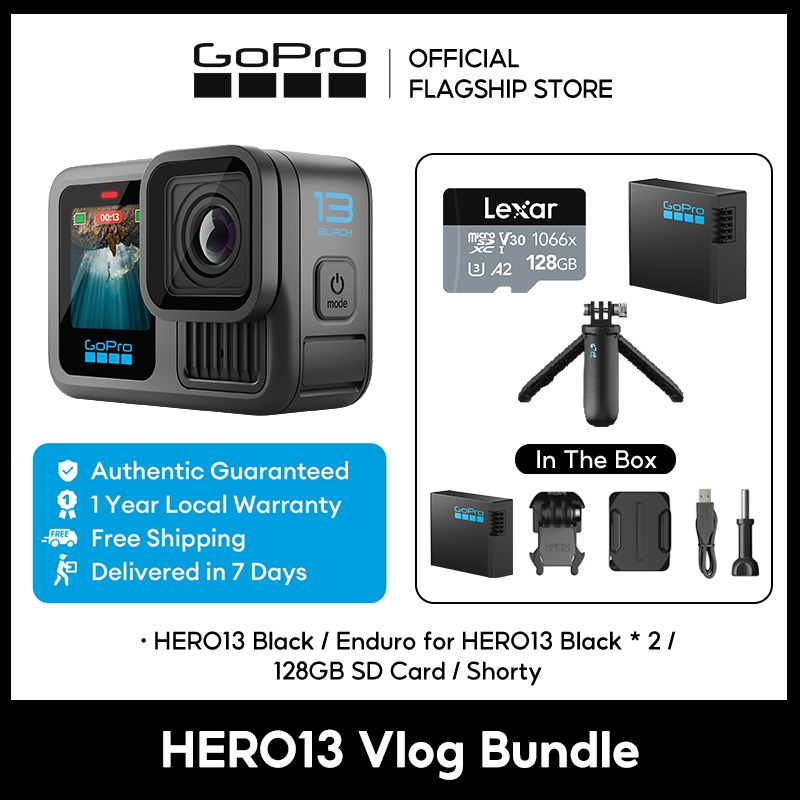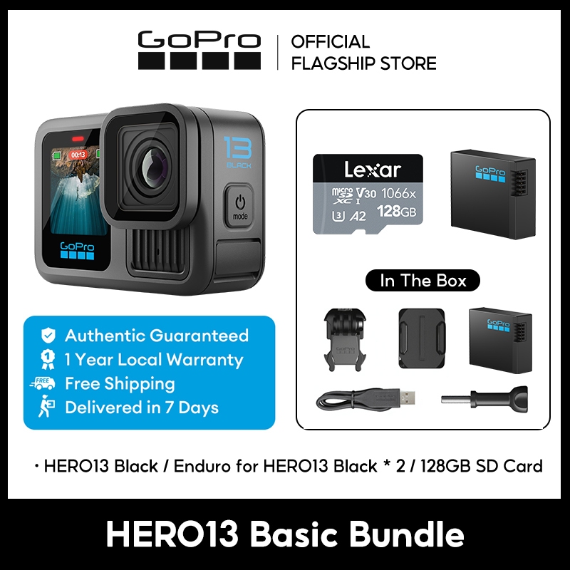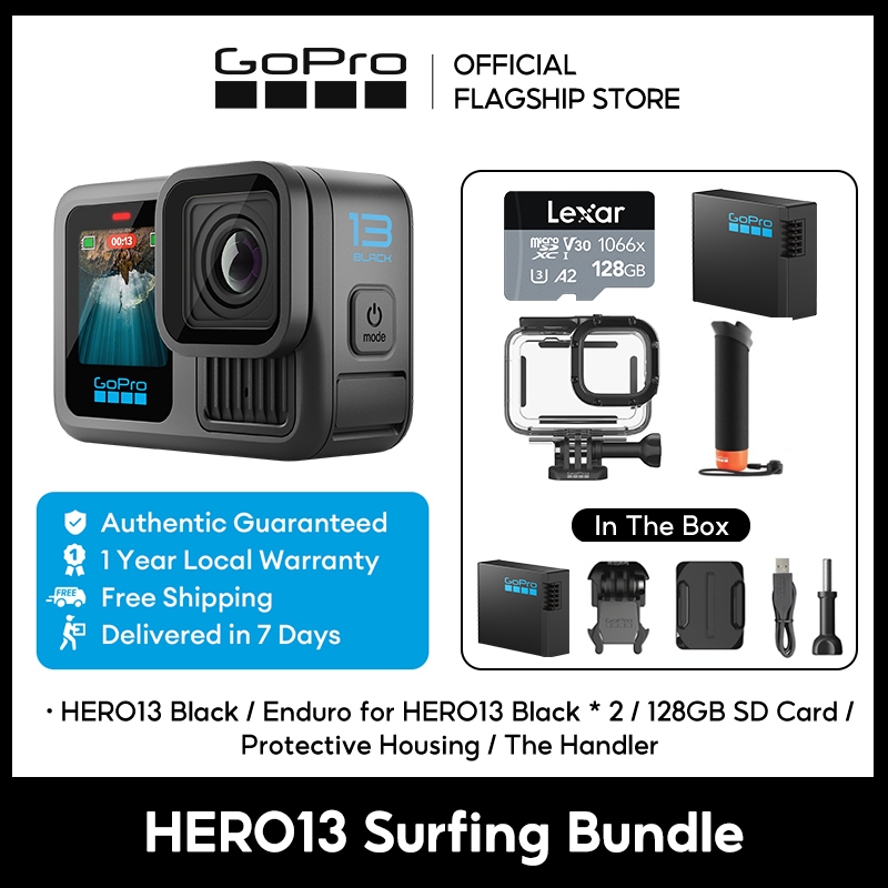 GoPro Hero13 Black Action Camera Video 5.3K60/ 4K120 + Photo 27MP , HyperSmooth 6.0, HLG-HDR Video, Rugged + Waterproof to 33ft (10m), Burst Slo-Mo, GPS[1 Year Warranty]