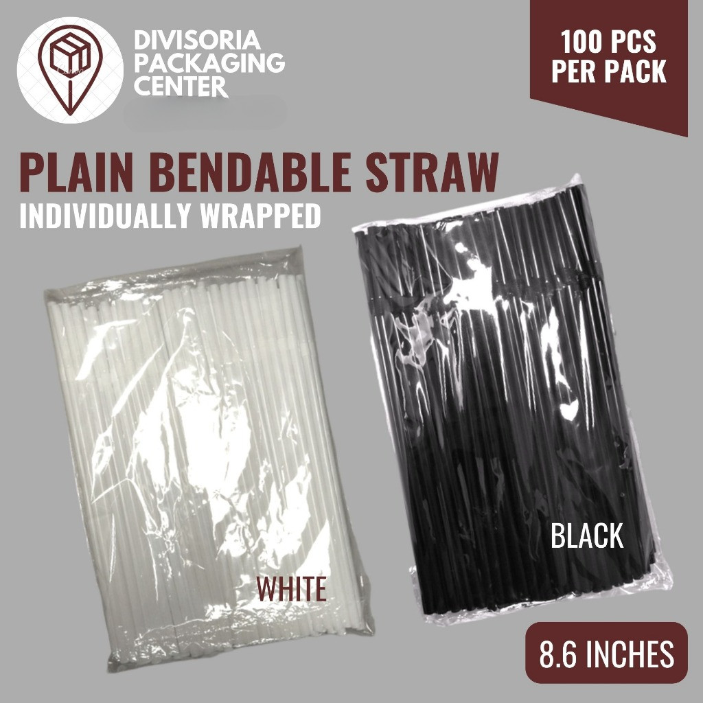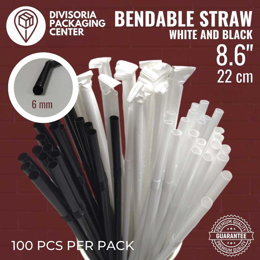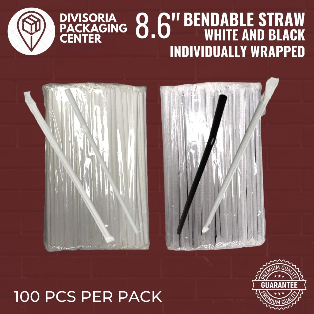[100's] Bendable Straw BLACK | WHITE | Plastic Straw (Individually Wrapped / No Wrap)