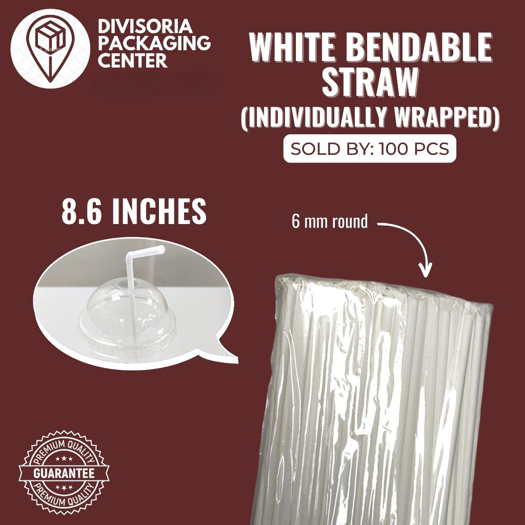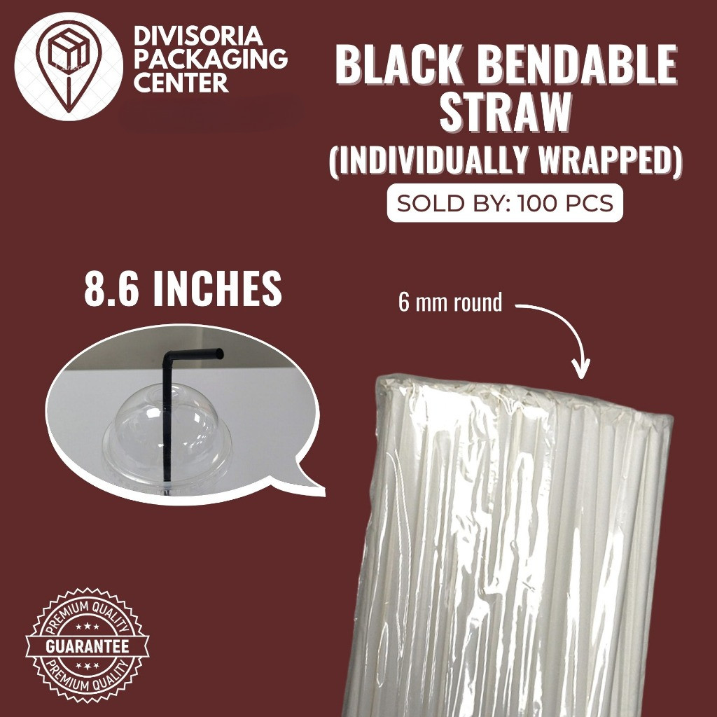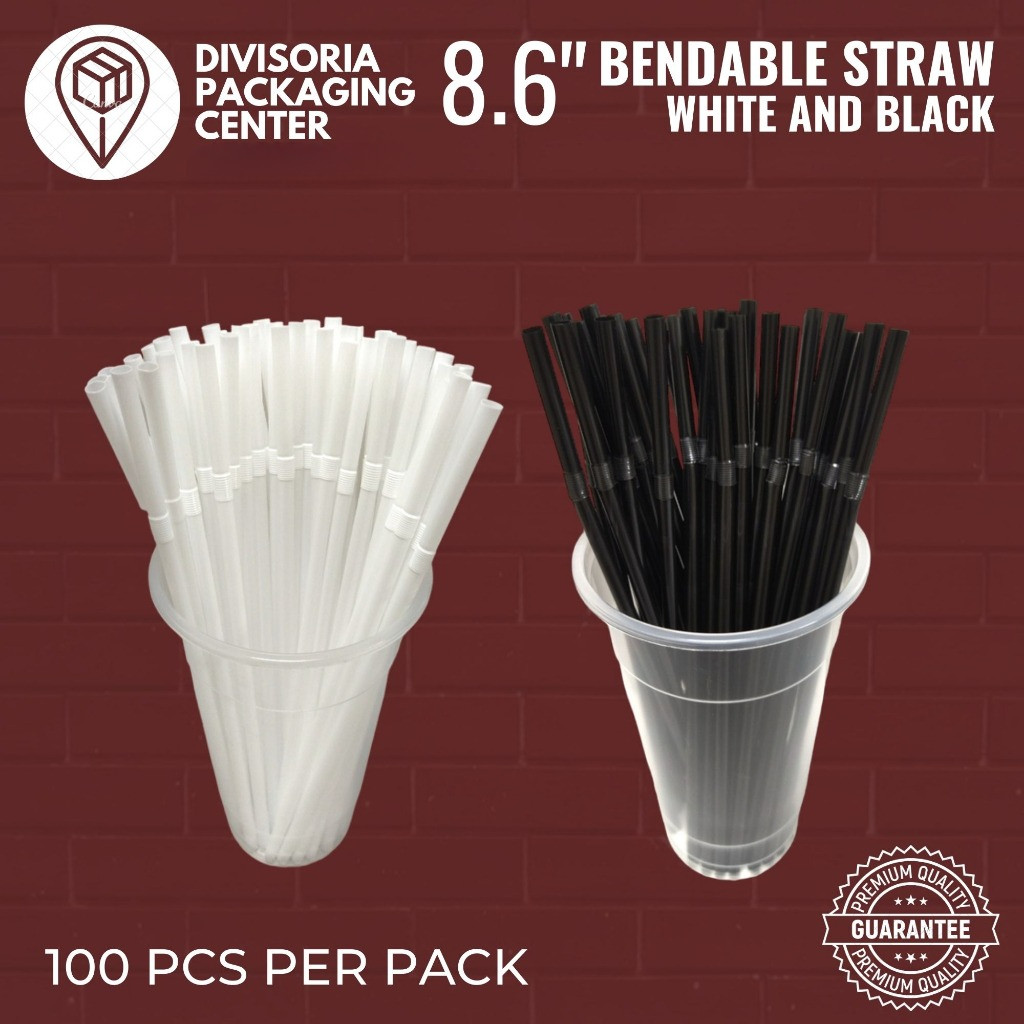 [100's] Bendable Straw BLACK | WHITE | Plastic Straw (Individually Wrapped / No Wrap)