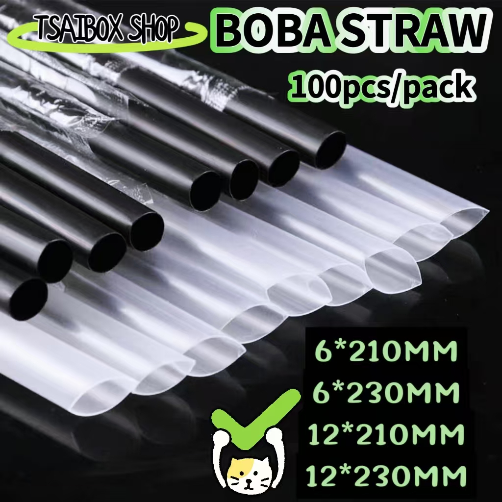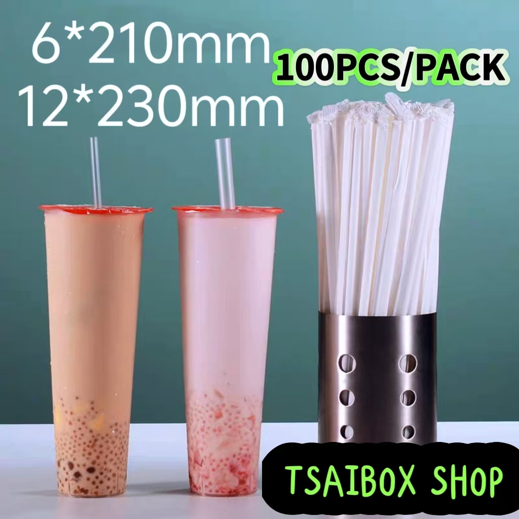 [100Pcs]BOBA straw Milk tea(21/23cm) Individually Wrapped drinking plastic Thin straw disposable