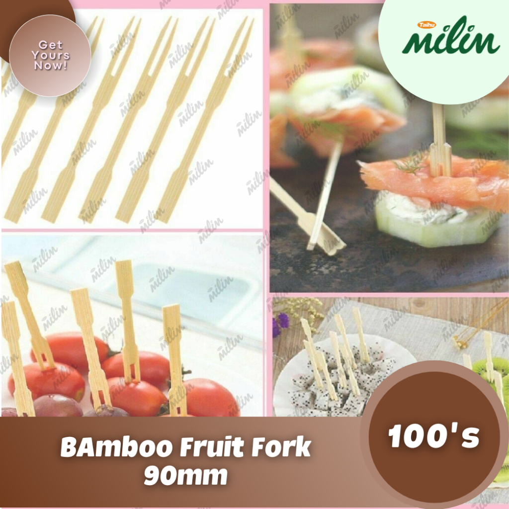 [100pcs] Bamboo Fruit Fork Stick 90mm / Disposable Bamboo stick / Eco Friendly