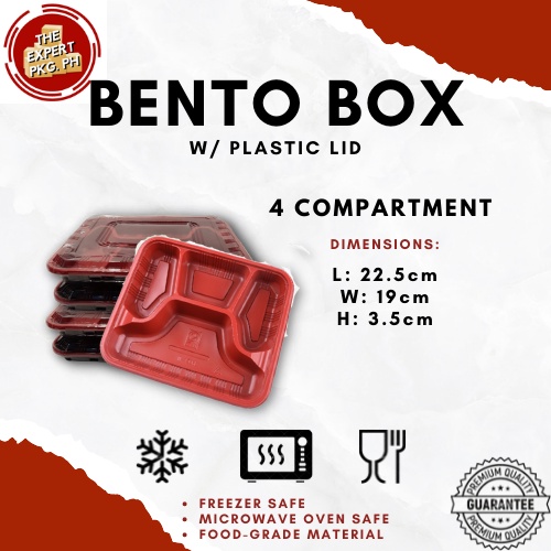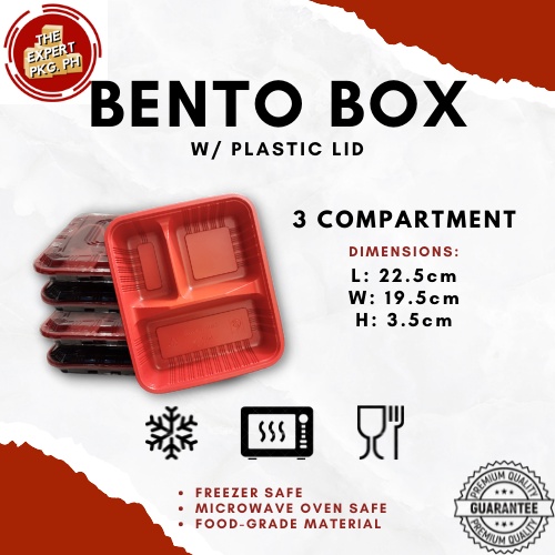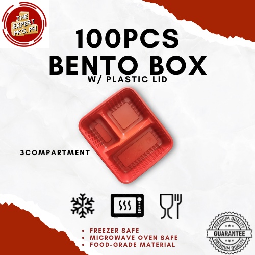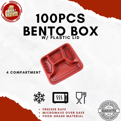 [100pcs] Bento Box Trays With Plastic Lid 1 | 2 | 3 | 4 | 5 COMPARTMENTS Red and Black