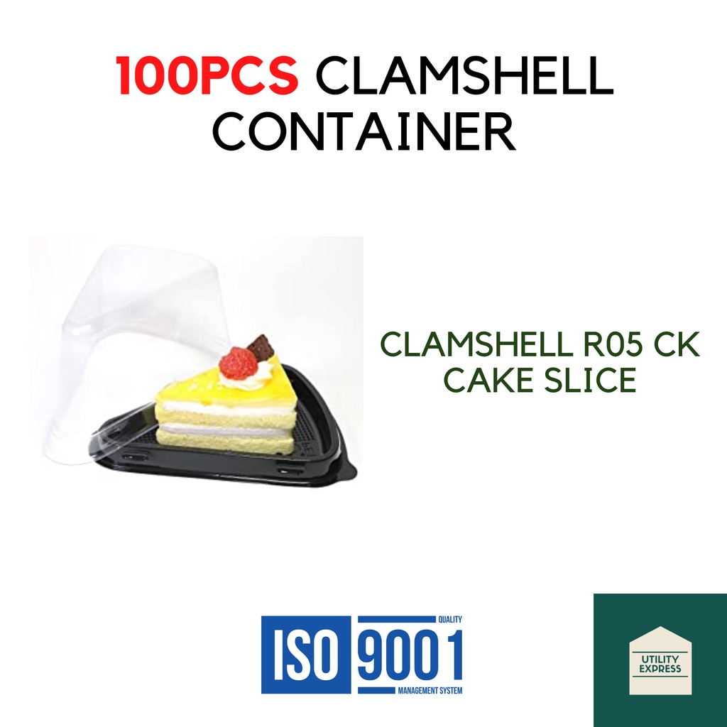 [100pcs] Clamshell [Cake Slice - RO5 CK ] 4.92"x3.54"x3.35" Plastic Lid w/ Black Tray OPS Container