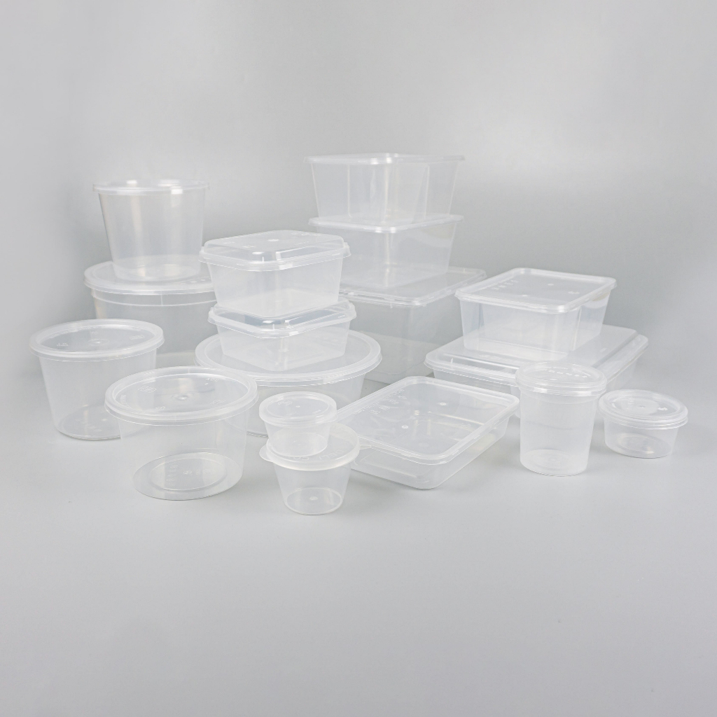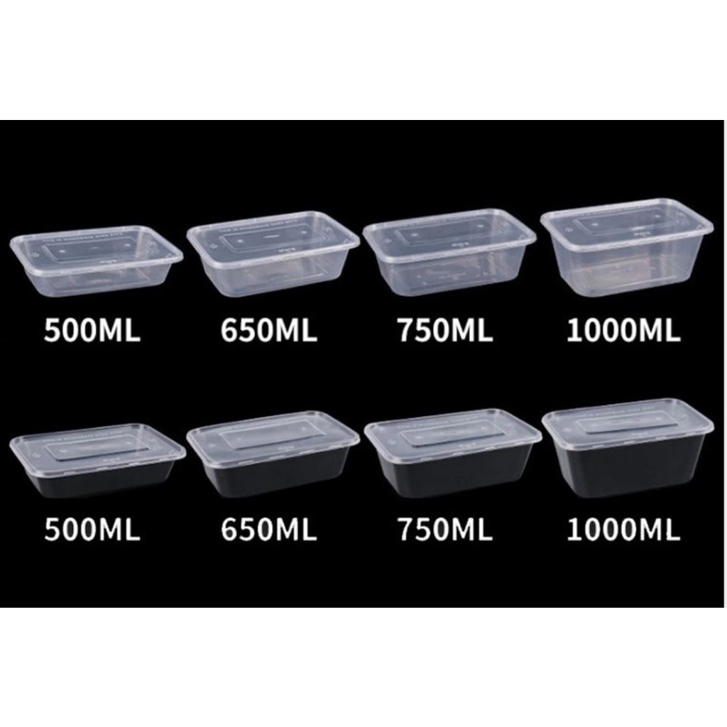 [10PCS] Rectangle & Round Black / Clear Plastic Microwavable Food Containers Microwaveable