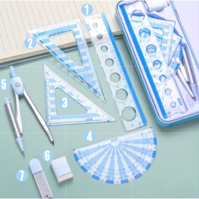 [12] 7Pcs/Set Professional with Wheel and Lock for Geometry, Drafting, Math, Drawing
