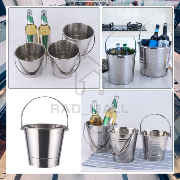 [1PC] High Quliaty Ice Bucket Stainless Steel 14CM/16CM Silver Metal Pail Ice Bucket Cold