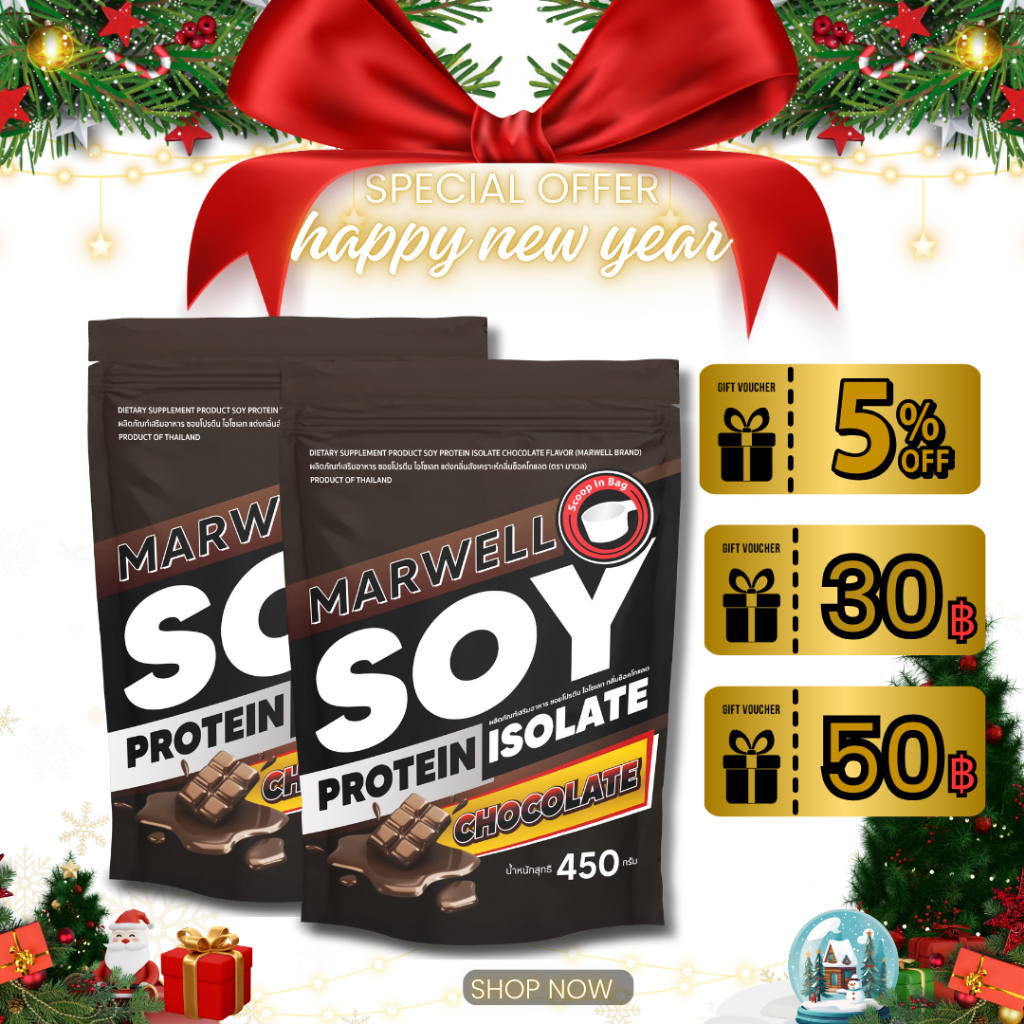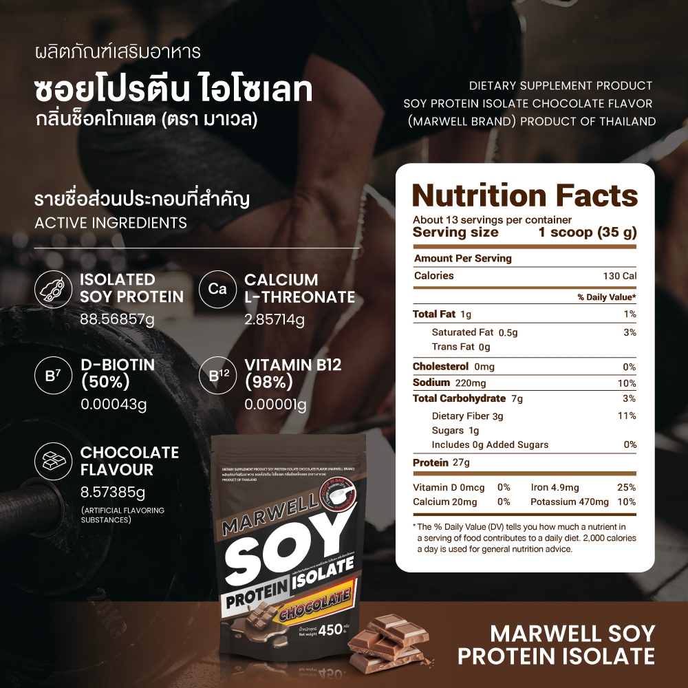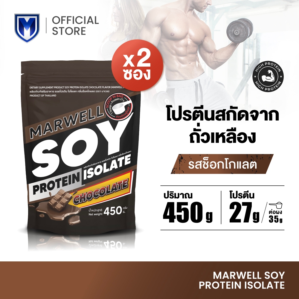 [2 Sachets] Marwell Soy Protein Isolate Chocolate Flavor Size 450 G.