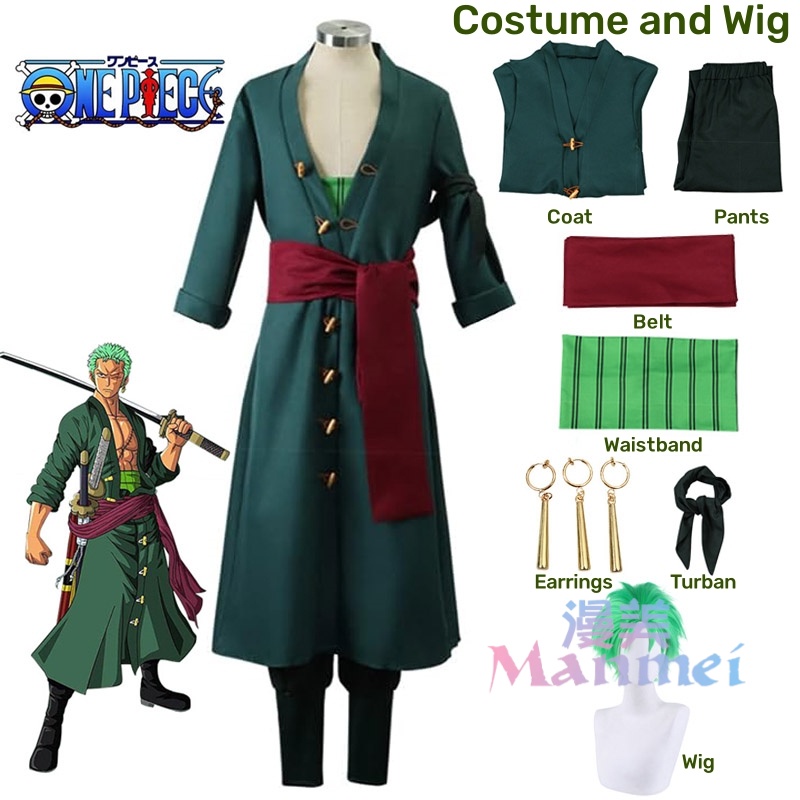 [24H SHIP]Roronoa Zoro 2nd Cosplay Costume Outfits One Piece Kimono Robe Halloween Cloak Cape Suits For Men