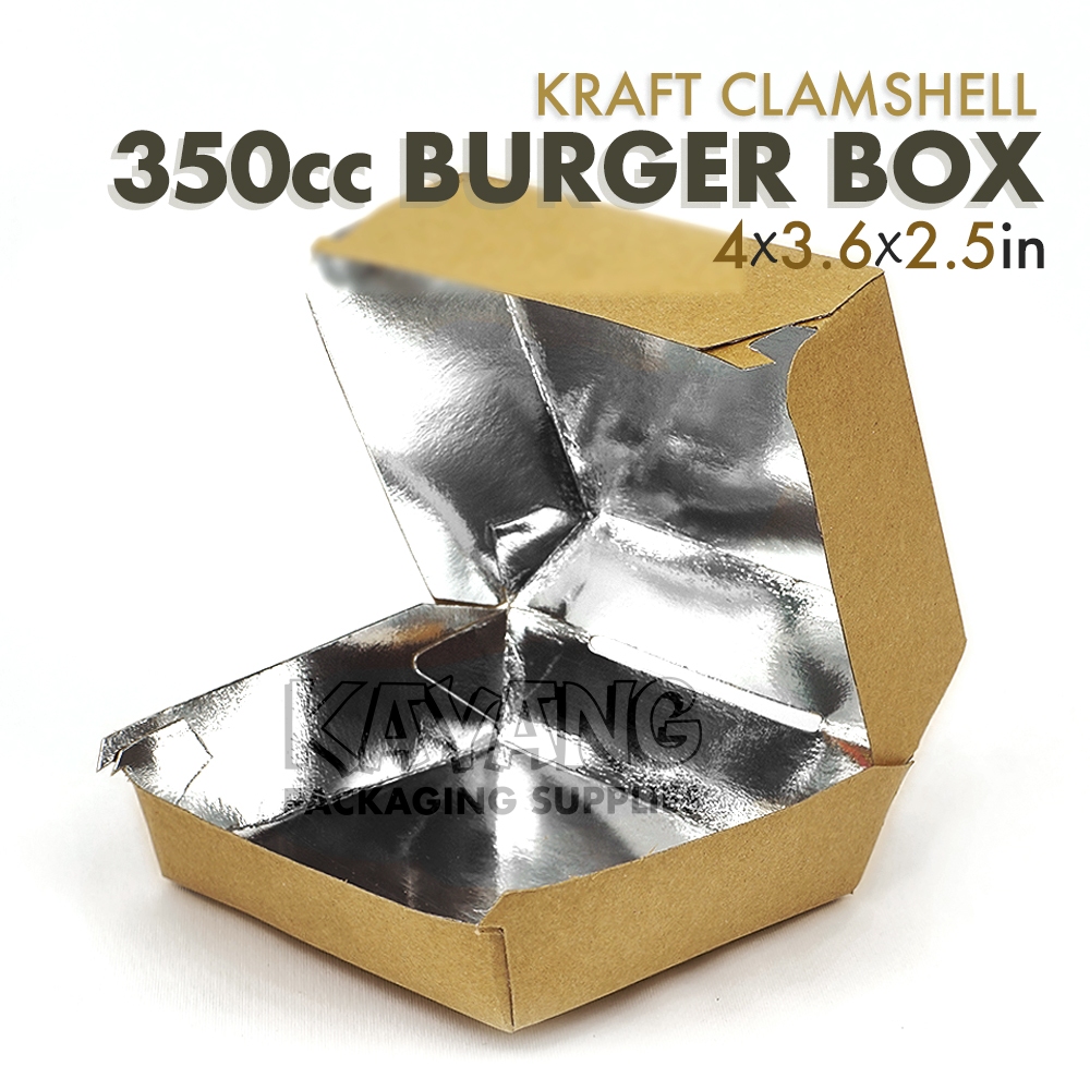 [25 pcs] Kraft Burger Box 350ml, Foil-coated Clamshell, High-Quality, for Burger, Cake, Sandwich