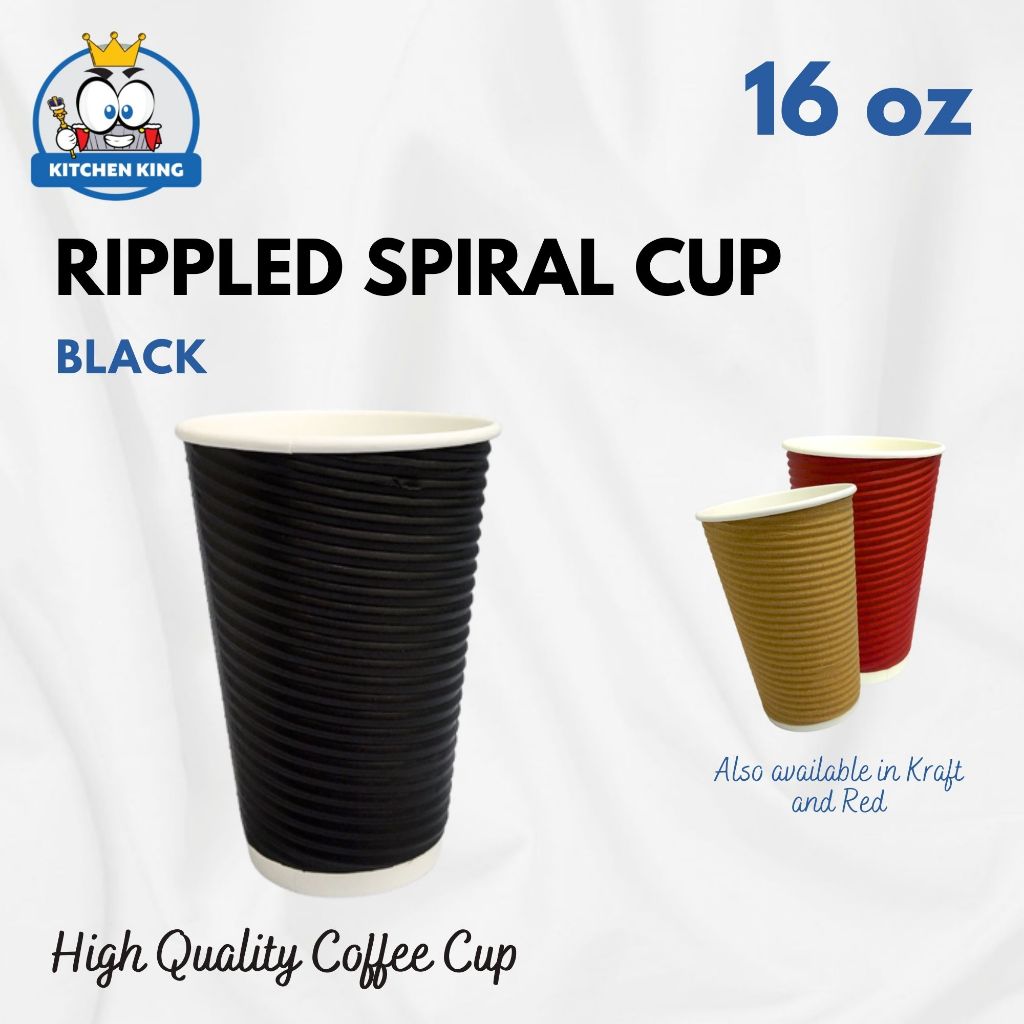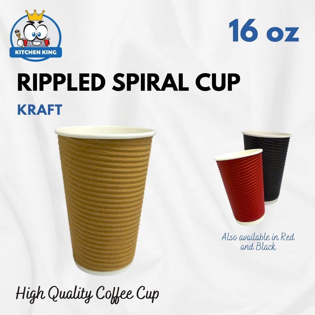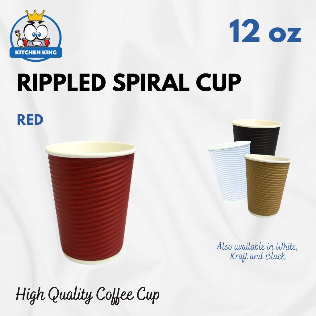 [25pcs] Rippled Wall Coffee Cup - 8oz / 12oz / 16oz [Black / Kraft / Red / White ] With or W/o Lid