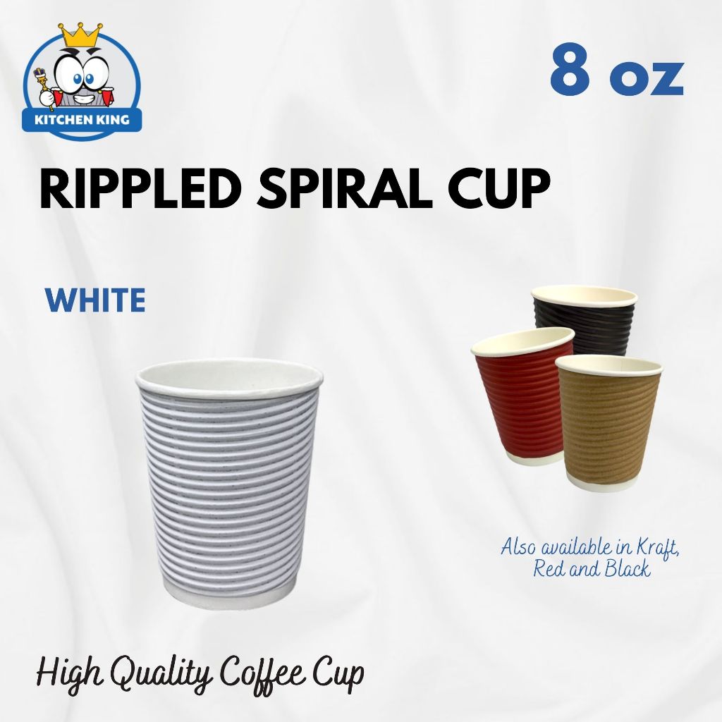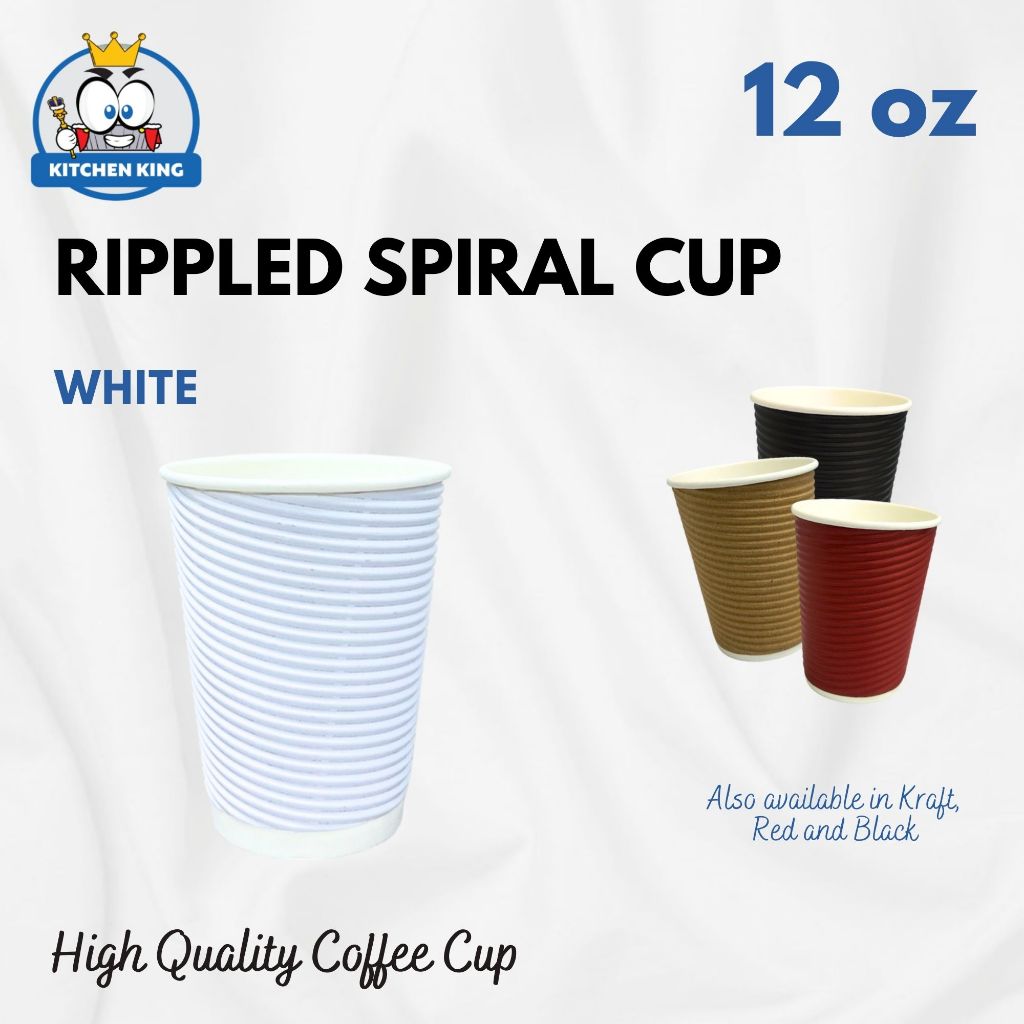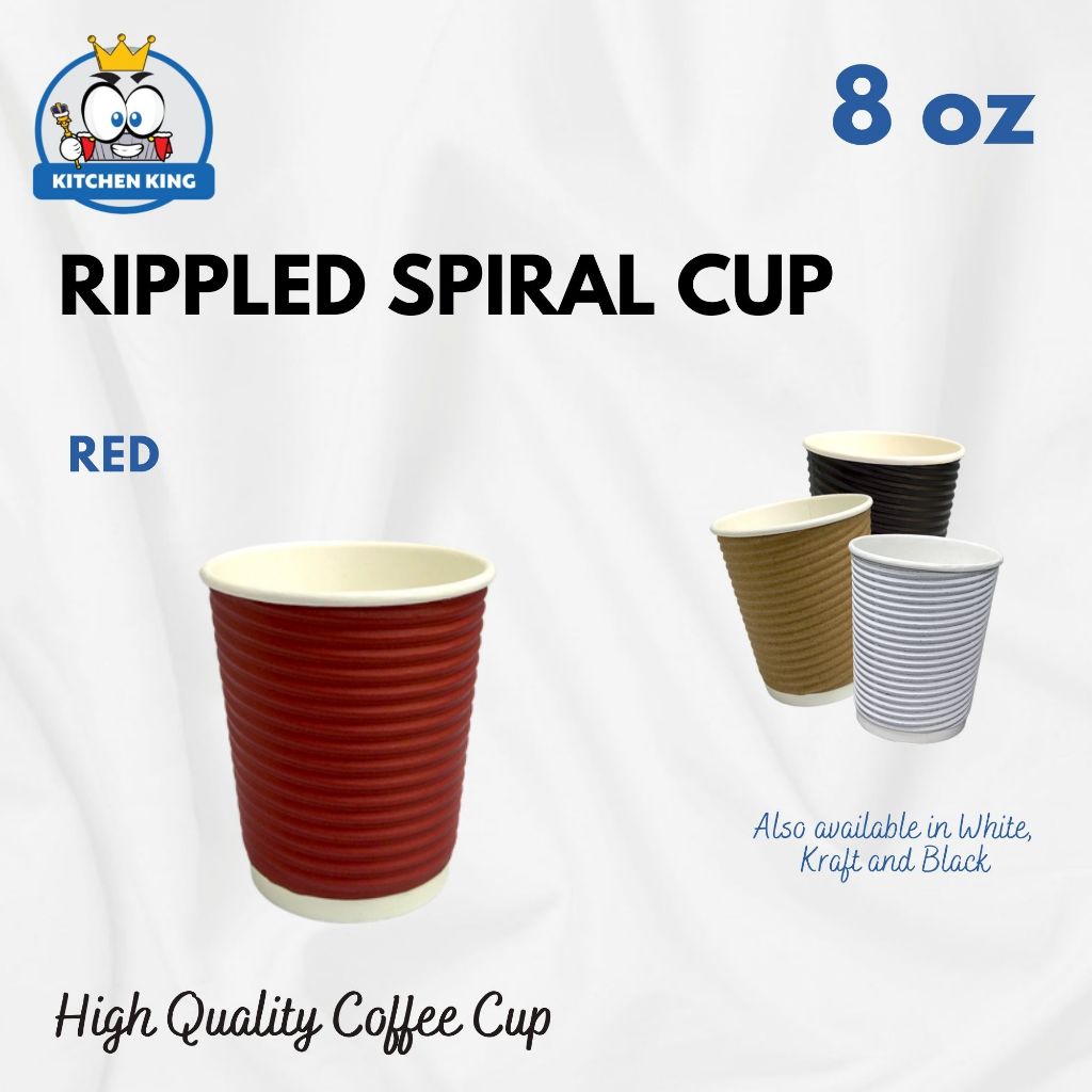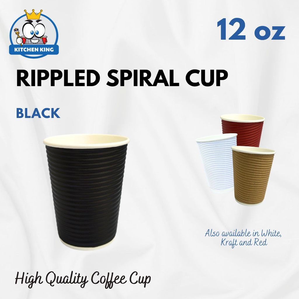 [25pcs] Rippled Wall Coffee Cup - 8oz / 12oz / 16oz [Black / Kraft / Red / White ] With or W/o Lid