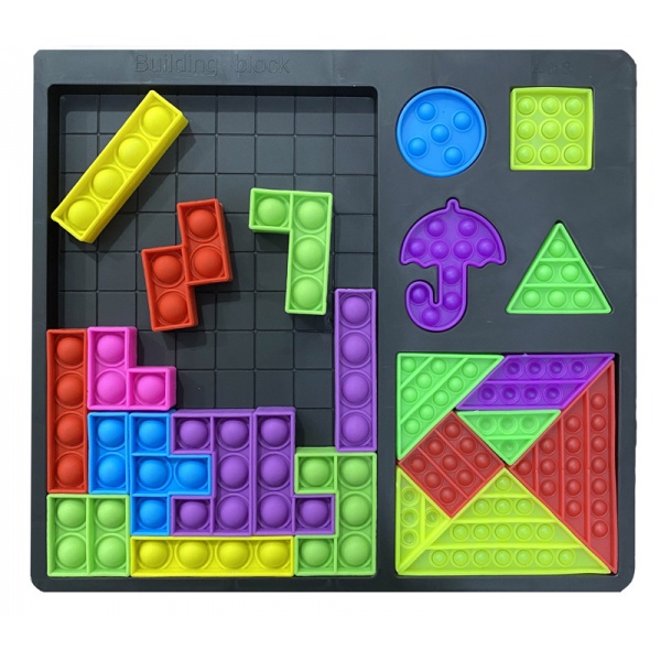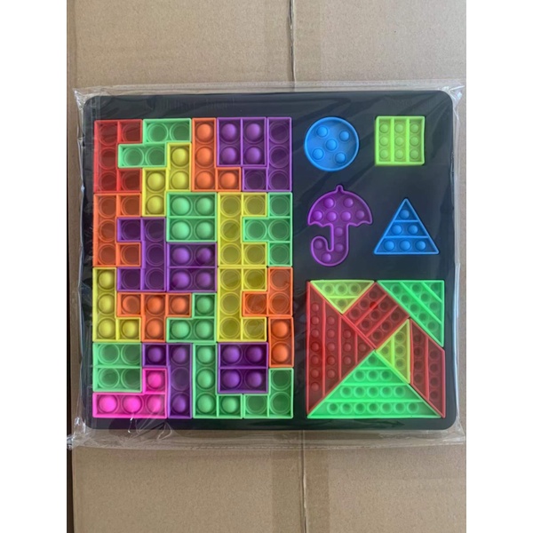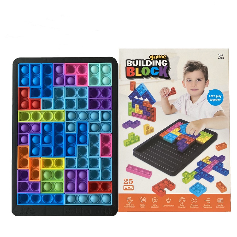 <27pcs/set>Pop It Tetris Fidget Unlimited Mosaic Blocks Bubble Decompression Puzzle Toys To Develop The Brain