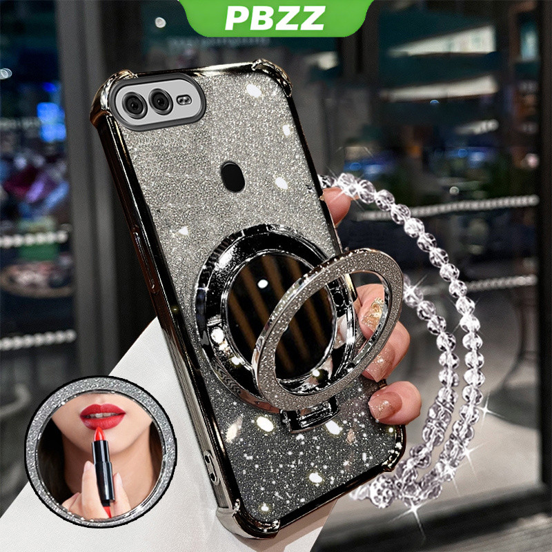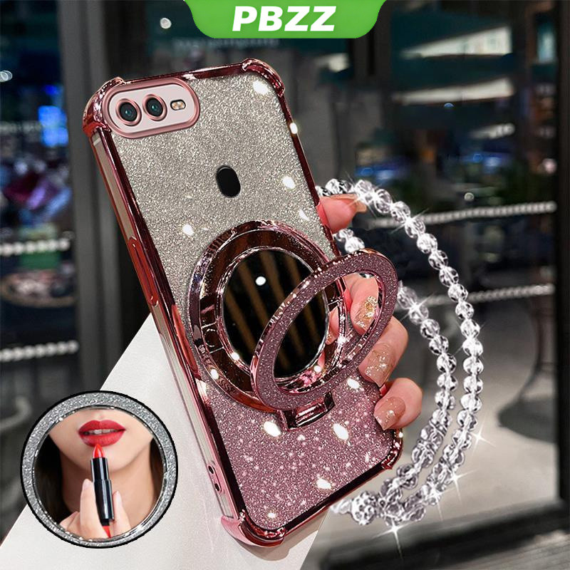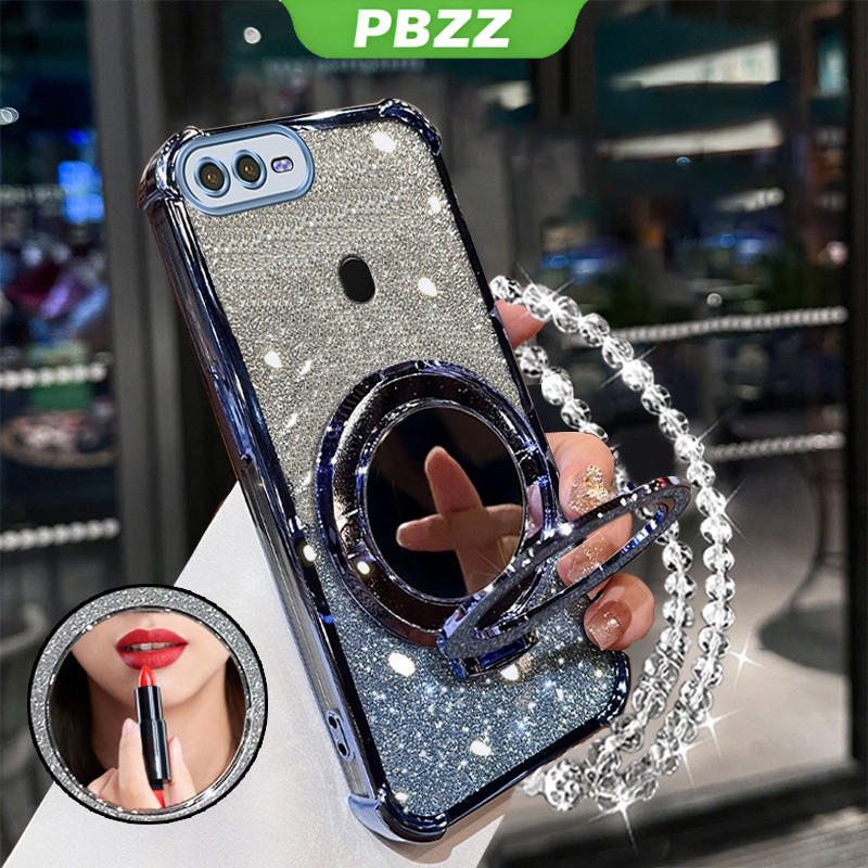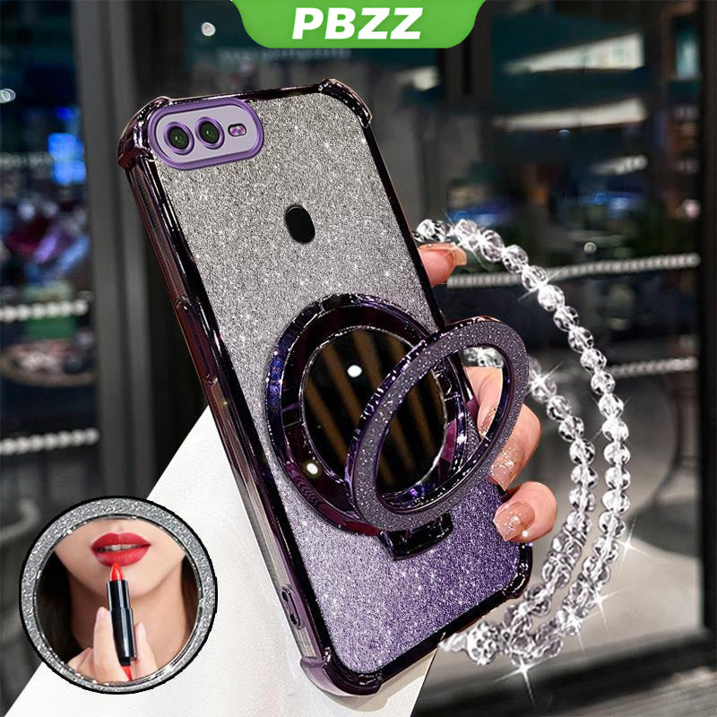 [3 in 1]Case for oppo a5s oppo a12 oppo A7 oppo a3s oppo a12e F9 phone casing Softcase Silicone shockproof Cover new design aesthetic Lanyard makeup mirror with holder SJSFHZJ01