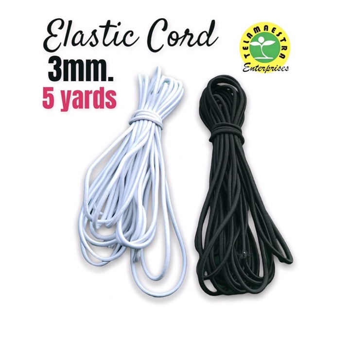 [3mm-Round] BLACK | WHITE Elastic Cord / Round Garter (for ppes, garments, etc) 5 yards
